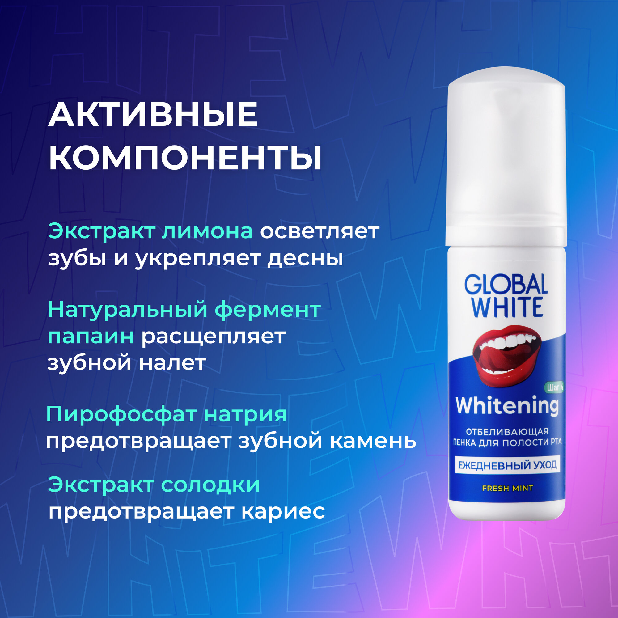 Купить Global White Отбеливающая пенка для зубов / 2 штуки