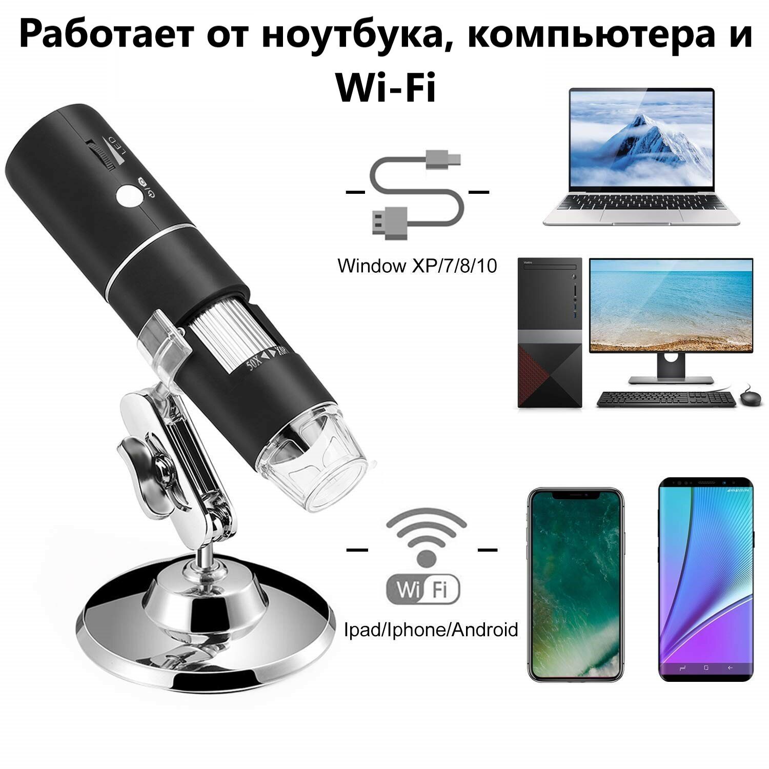 Микроскоп цифровой 1000x, Wi-fi