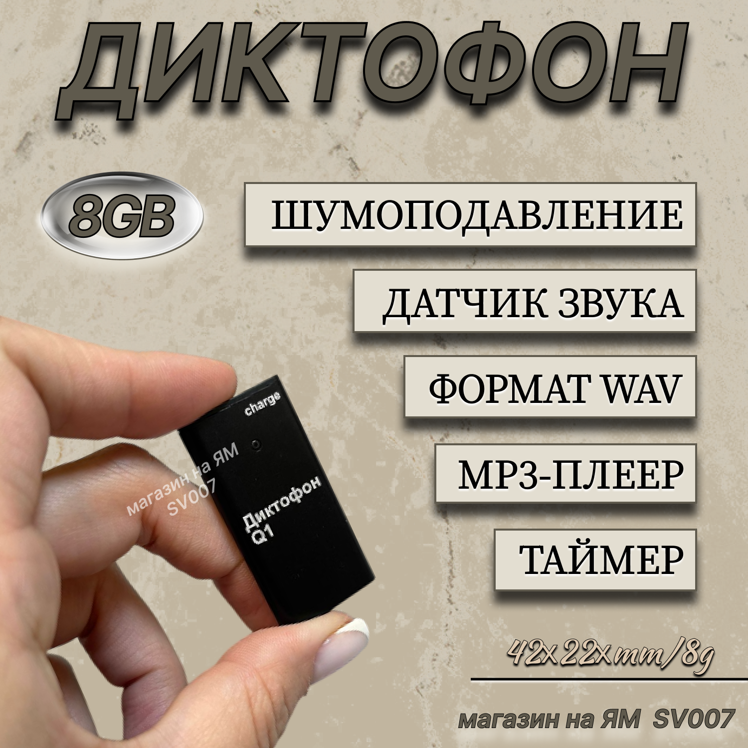 Мини диктофон Q1 8 GB, до 96 часов записи, датчик звука, запись по таймеру, циклическая запись, MP3-плеер интересное: