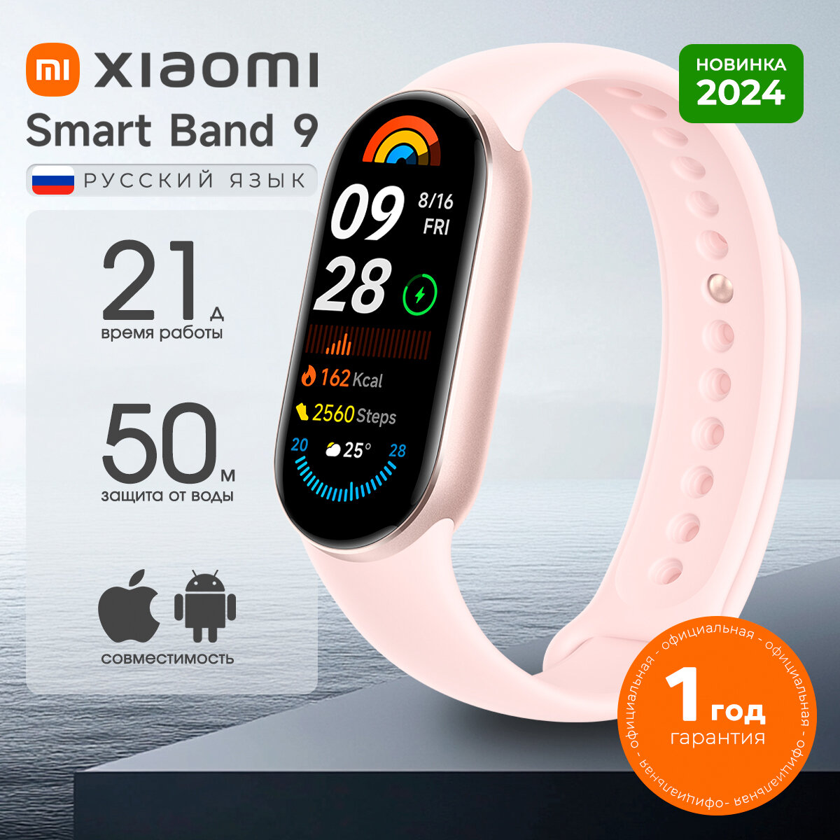 Фитнес-браслет с умным браслетом Xiaomi Mi Smart Band 9 розовый (Global)