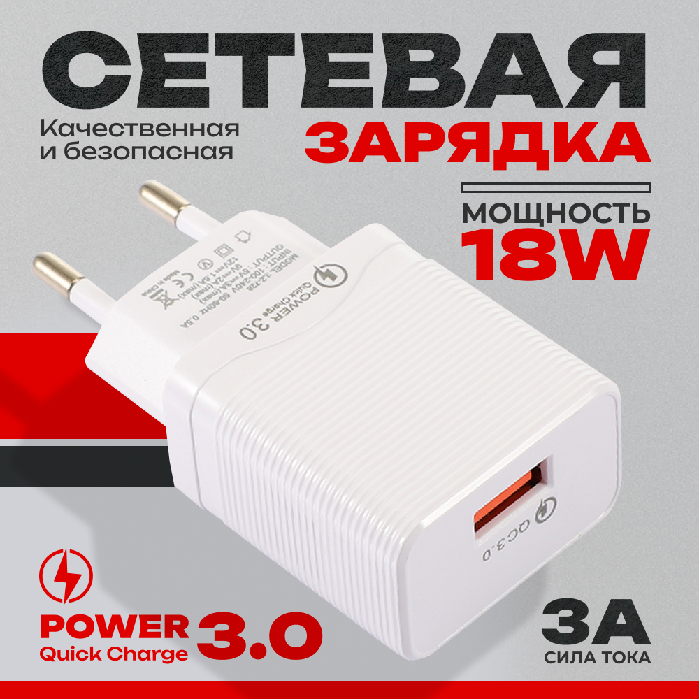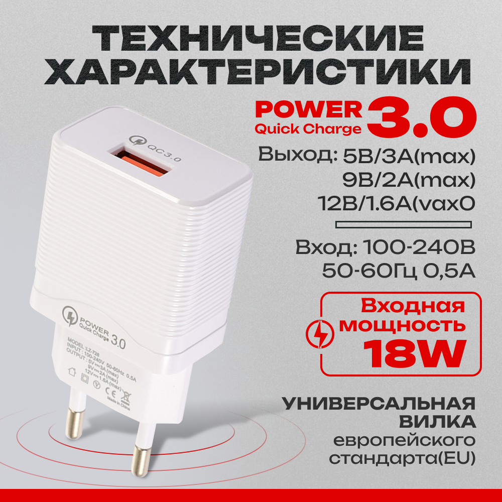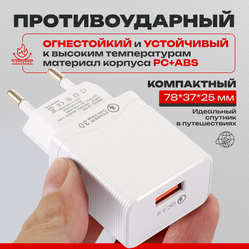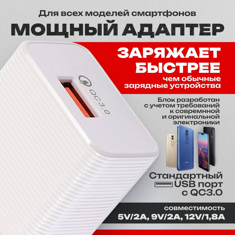Зарядное устройство для телефона 18W с функцией быстрой зарядки QC 3.0 / цвет белый интересное: