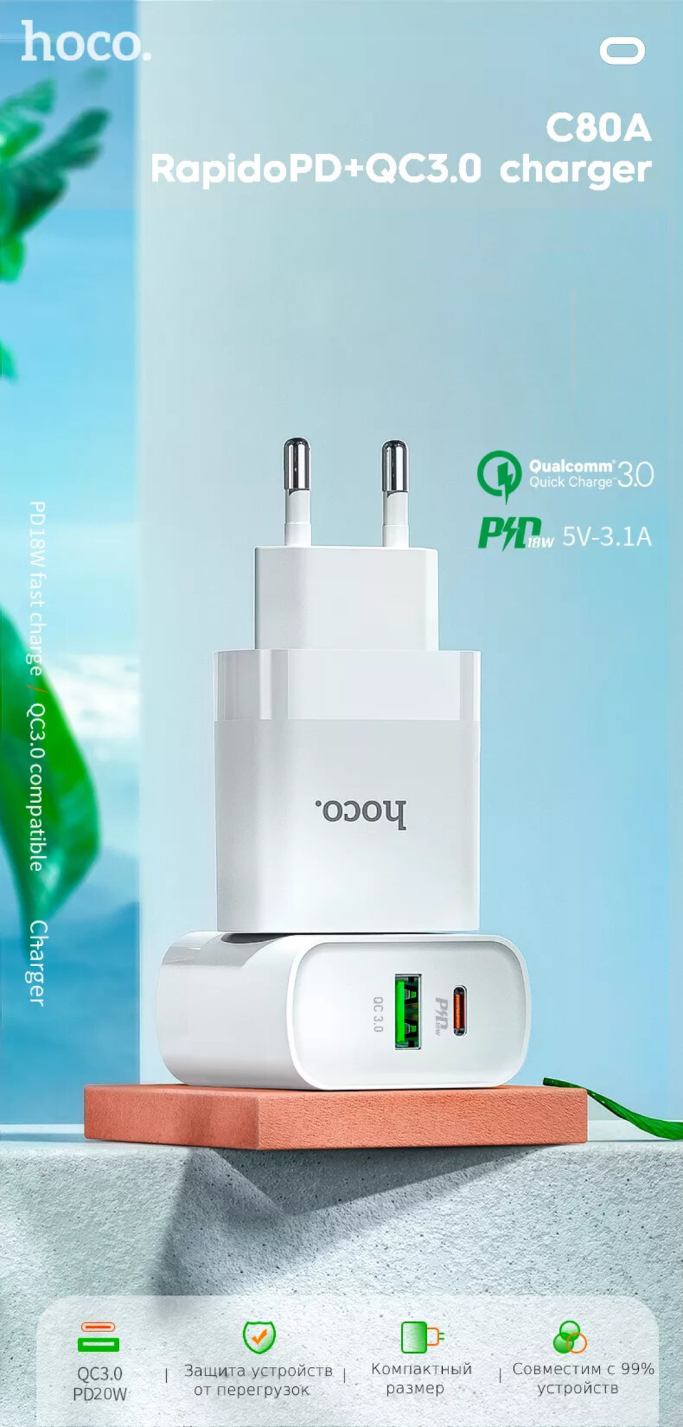 Ниже Вы можете прочитать отзывы на Сетевое зарядное устройство, 1 USB 3.0 QC+1 PD 20W (C80A), HOCO, Type-C to Lightning, белый, ознакомится с подробными характеристиками, посмотреть интересные обзоры и фотографии на Сетевое зарядное устройство, 1 USB 3.0 QC+1 PD 20W (C80A), HOCO, Type-C to Lightning, белый.