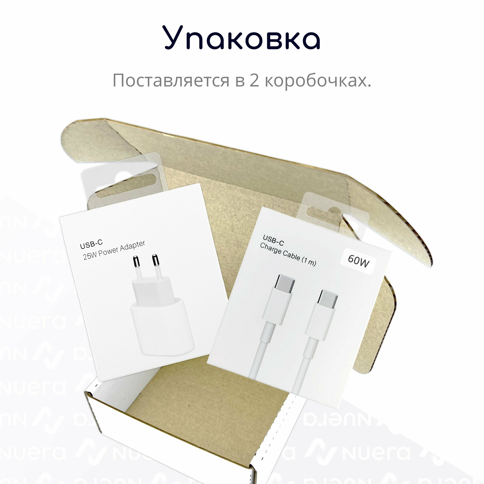 Комплект быстрой зарядки USB-C для iPhone 15: блок 25W + кабель, 1 метр / Original Drop