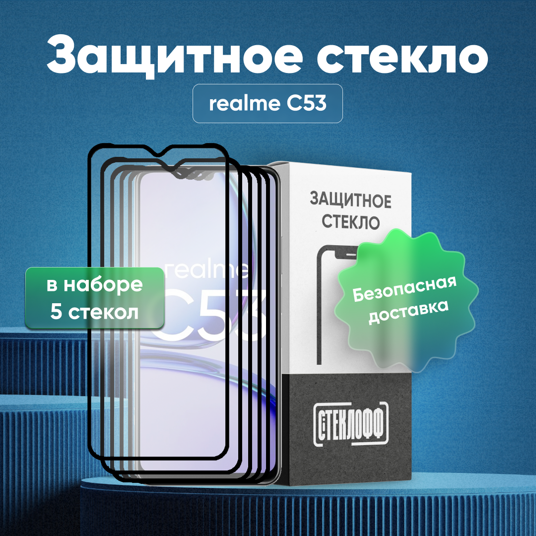 Набор защитных стекол для realme C53 c полным покрытием, серия Стеклофф Base, 5 шт интересное: