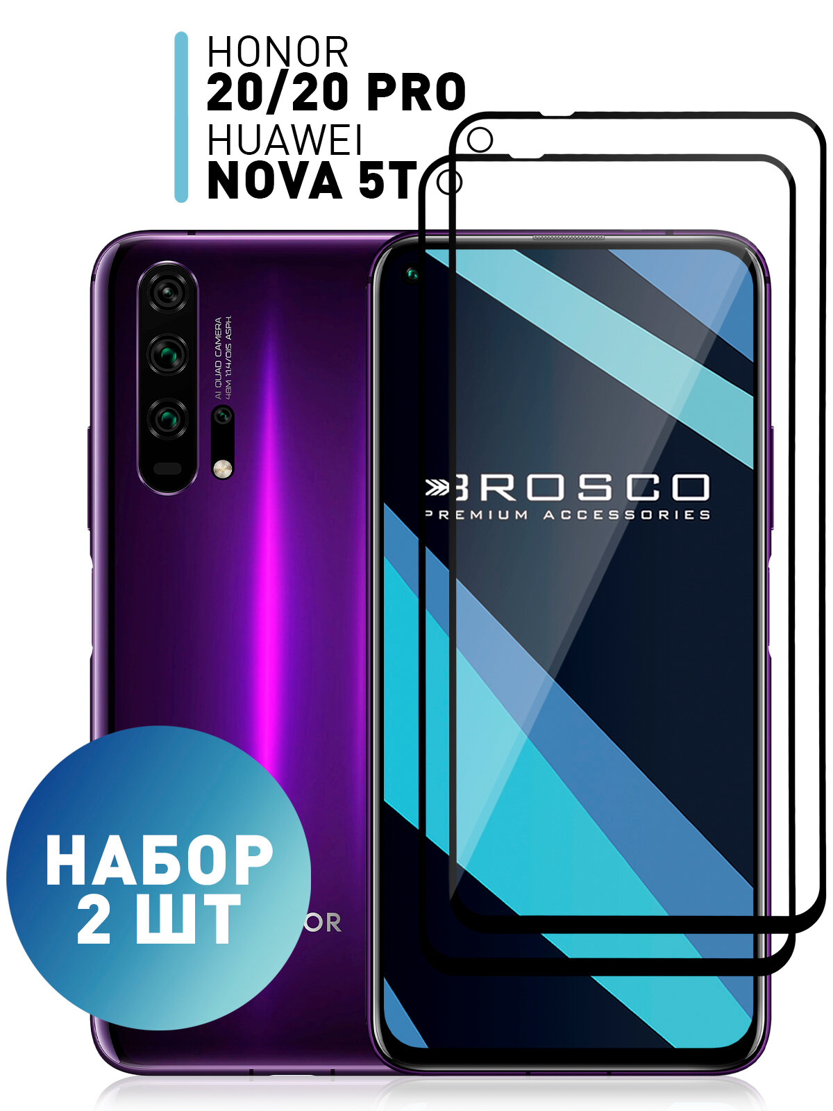 Набор защитных стёкол Rosco на Honor 20, 20 Pro и Huawei Nova 5T (Хонор 20 и 20 Про, Хуавей Нова 5Т), с рамкой, 2 шт