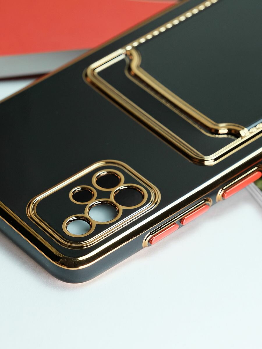 Купить Чехол на Samsung Galaxy A51 с золотой рамкой противоударный бампер с карманом для карт на Самсунг Галакси А51 Черный