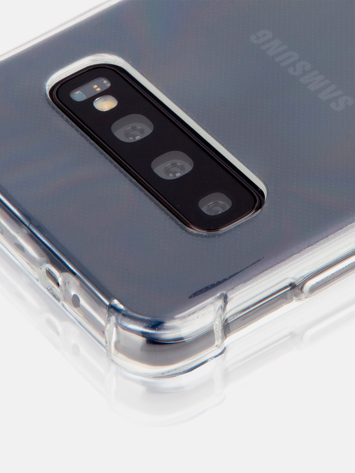 Противоударный чехол для Samsung Galaxy S10 (Самсунг Галакси С10) силиконовый с усиленными углами, ROSCO защита вокруг модуля камер, прозрачный