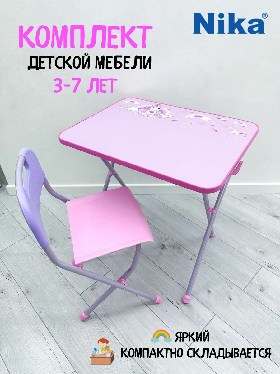 Комплект детской мебели НИКА КА2-М/1 с единорогом, цвет каркаса розовый