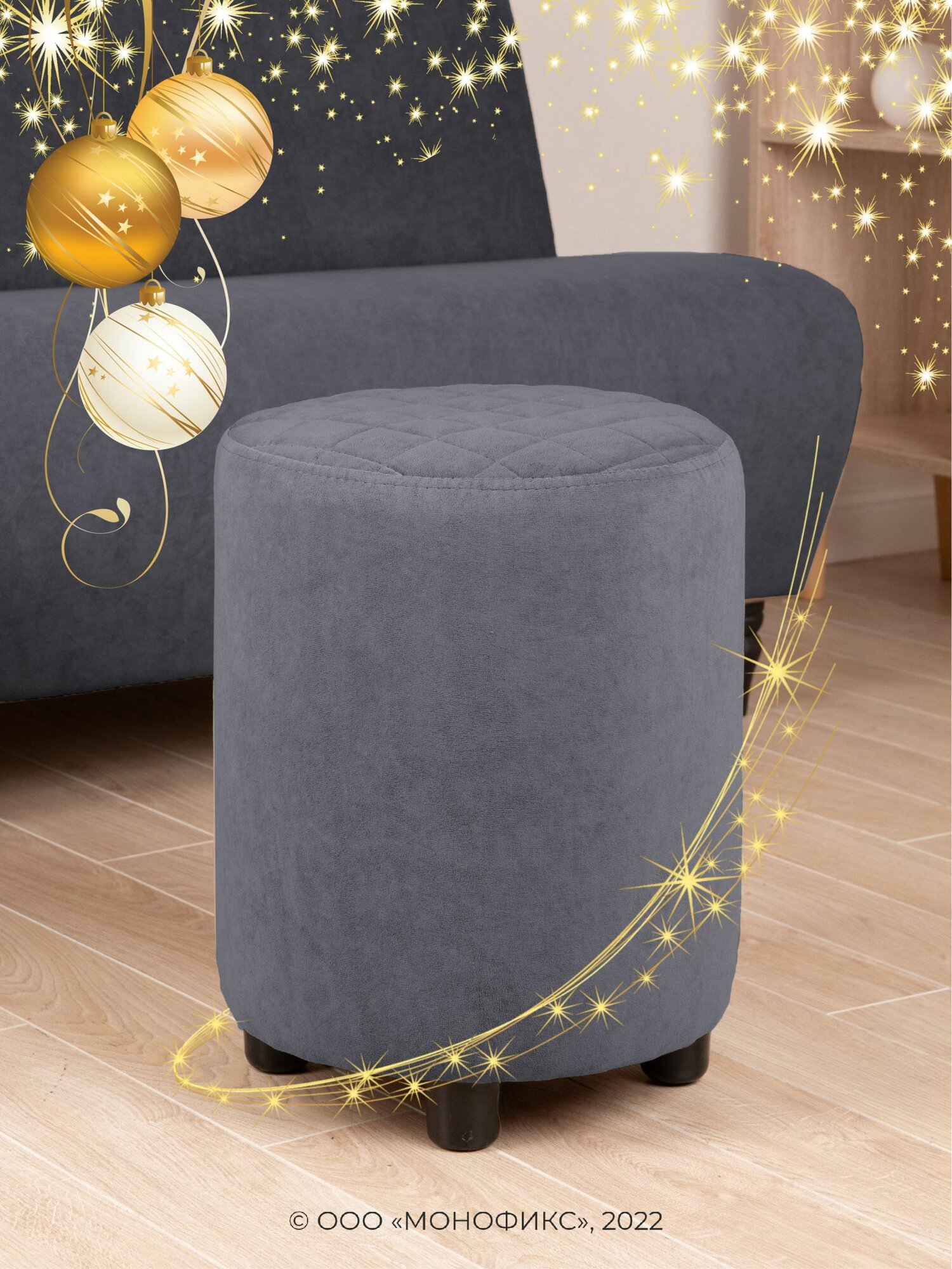 Купить Пуф MONOFIX йокки, велюр, темно-серый (№8), 34х43х34 (ШхВхГ)