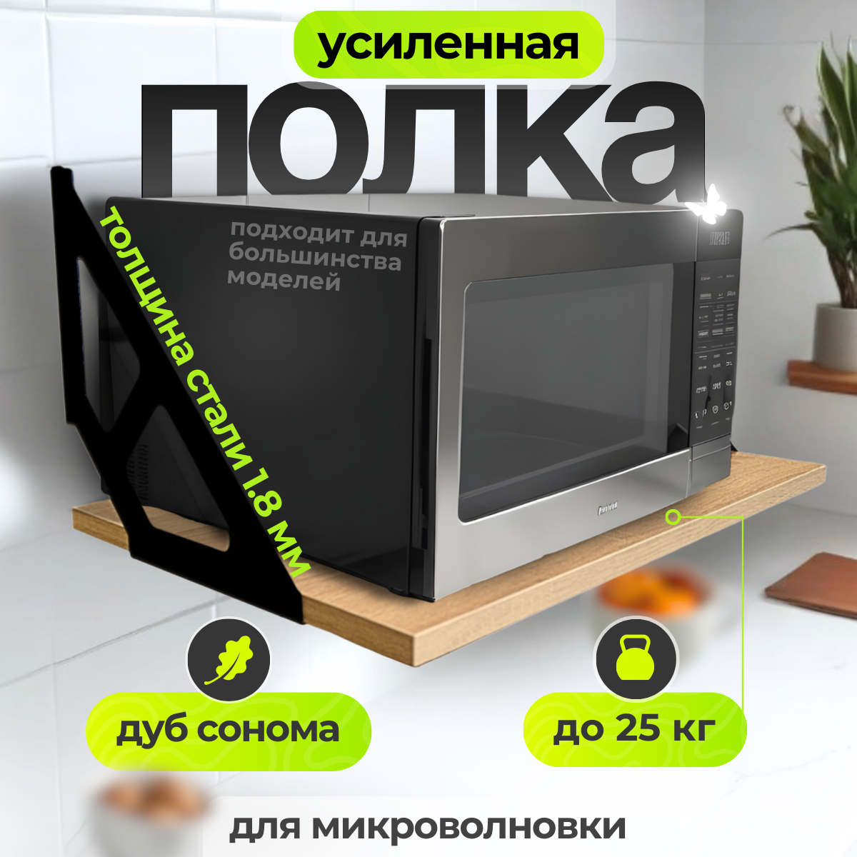 Полка настенная навесная для микроволновки на кухню