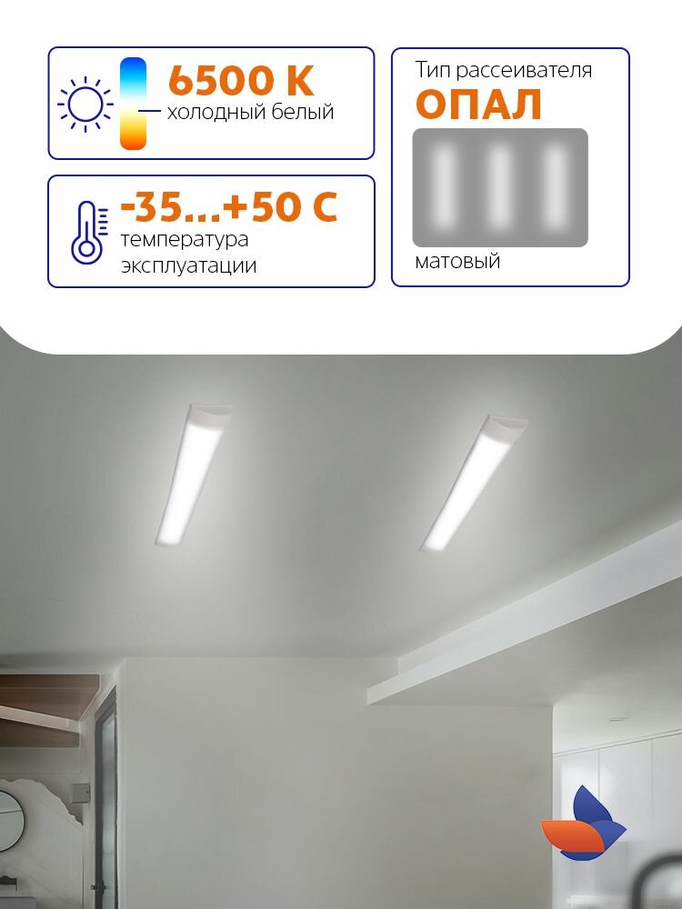 Светильник потолочный светодиодный RSV 1200 мм, 100 Вт, 8000 Лм, IP40, RSV-SPO-02-100W-6500K интересное: