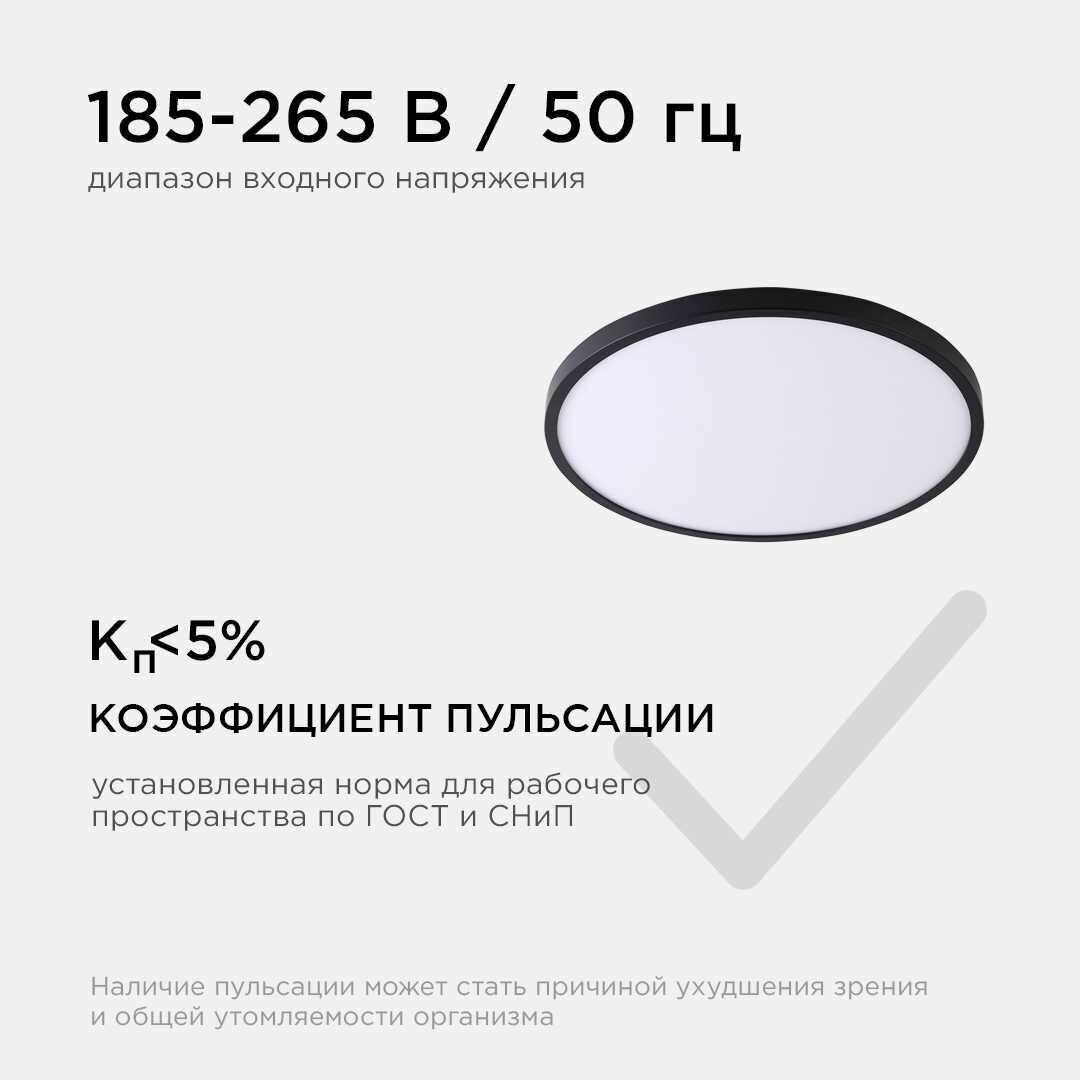 Светильник светодиодный накладной Apeyron 18-139, SPIN, 48Вт, 230В/50Гц, 4800лм, 4000К, 500х25, круг, черный