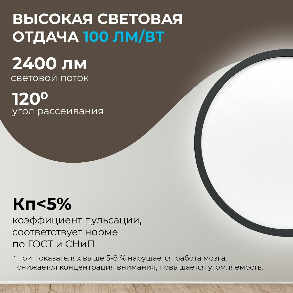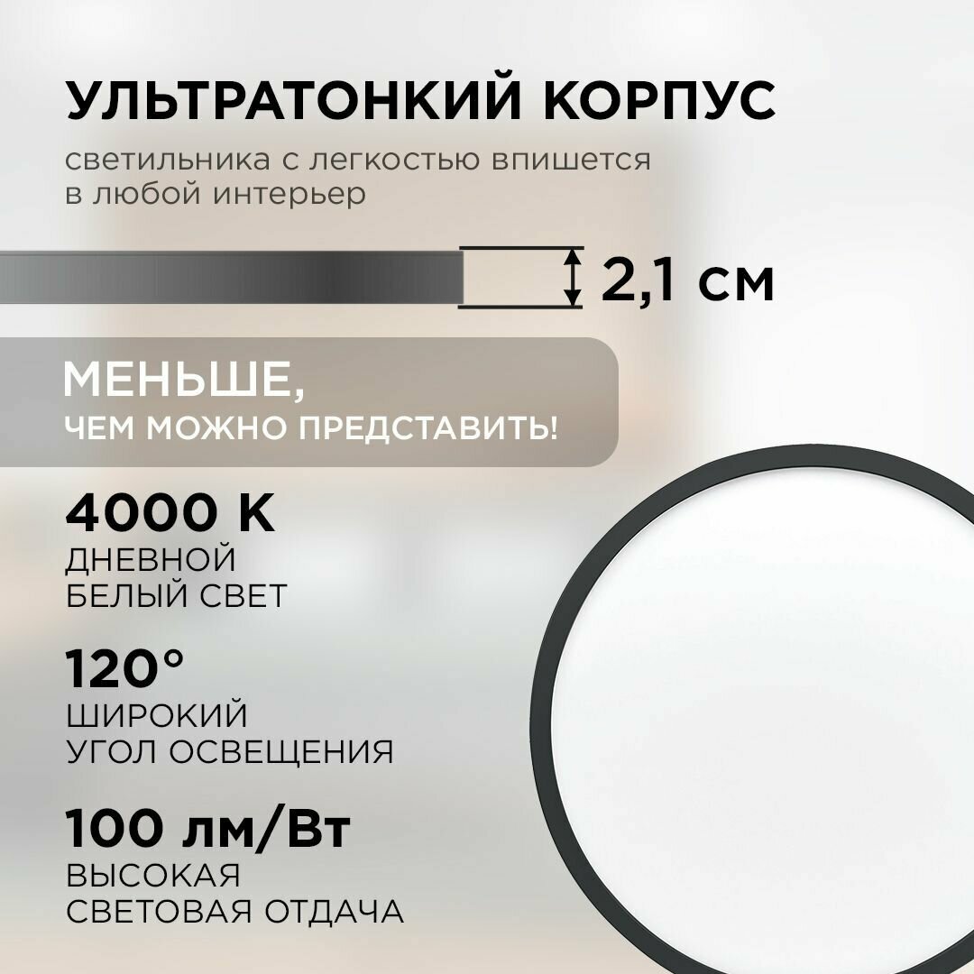 Светильник потолочный светодиодный накладной Apeyron 18-127 обладает дневным цветом свечения 4000К / 2400Лм / SPIN /24Вт / черный, d230х25мм