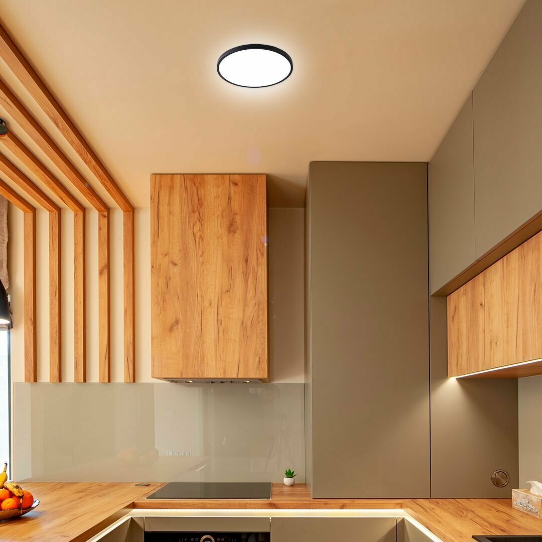 Светильник, потолочный черный светодиодный накладной 28 Вт, круг, черный