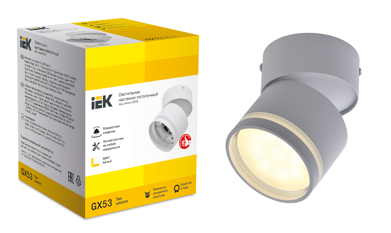 LIGHTING Светильник 4011 накладной настено-потолочный под лампу GX53 белый IEK