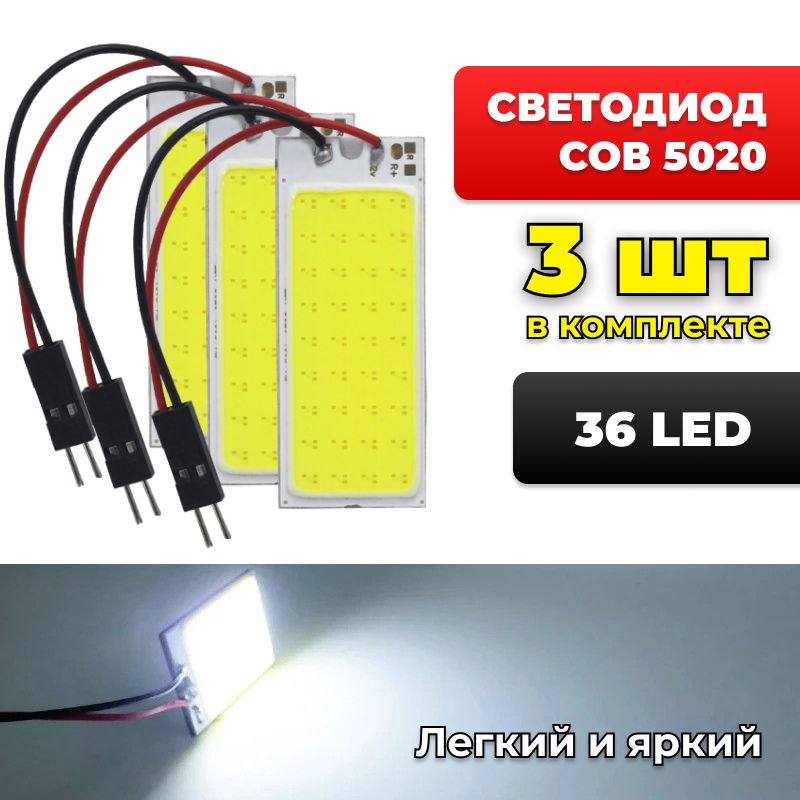 Купить Сверхяркие светодиоды COB 5020 12V 3шт