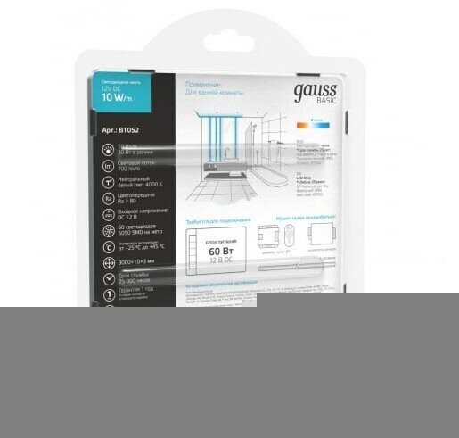 Светодиодная лента Gauss Basic LED 5050/60 12V 10W/m 700lm/m 4000K 10mm IP65 3m 1/100