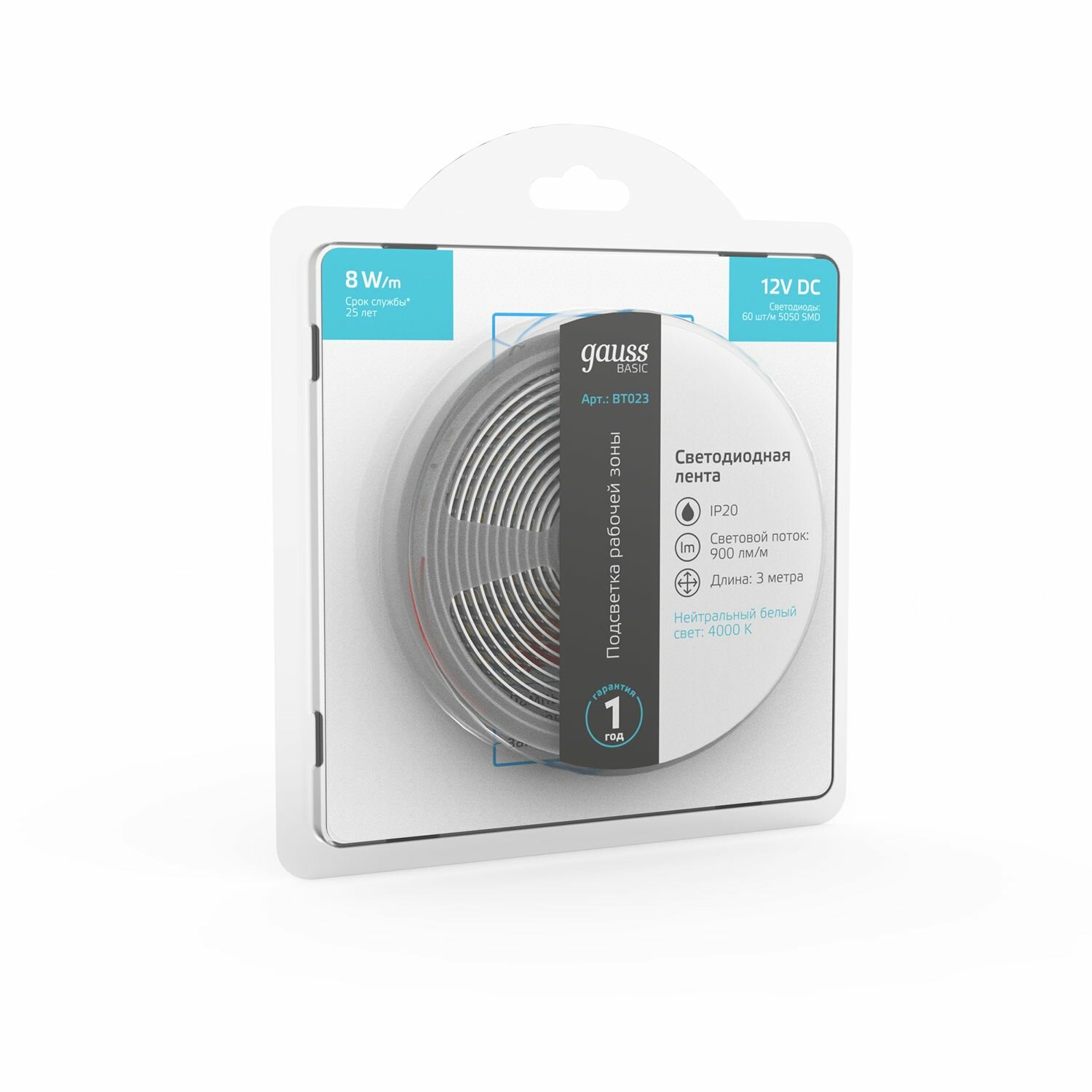 Купить Лента Gauss Basic LED 5050/60 12V 8W/m 900lm/m 4000K 10mm IP20 3m