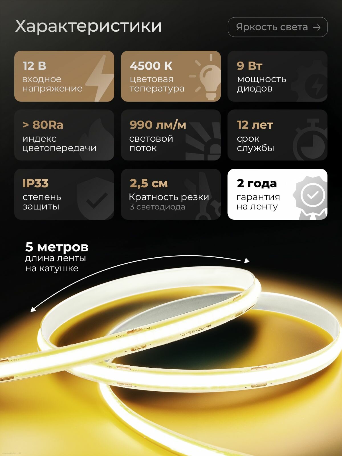 СохранитьСветодиодная лента СОВ LUX "Eleganz 12В" на самоклеящейся основе, 9 Вт , 512 LED, IP33 Нейтральный белый свет, 5 метров интересное: