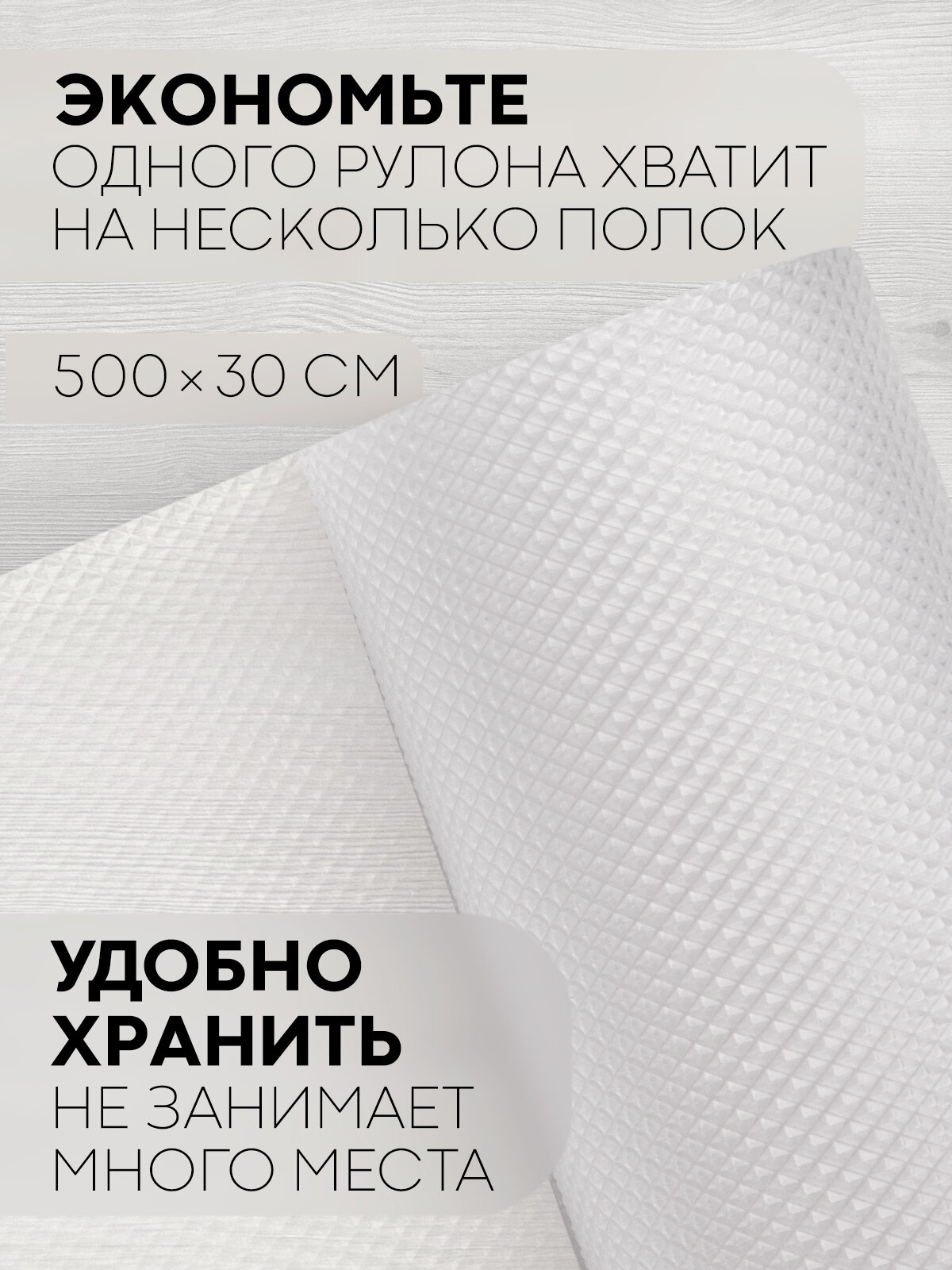Водостойкий противоскользящий ПВХ коврик-подстилка для кухонных полок, ящиков, холодильника (универсальный 150 см х 60 см в рулоне), белый