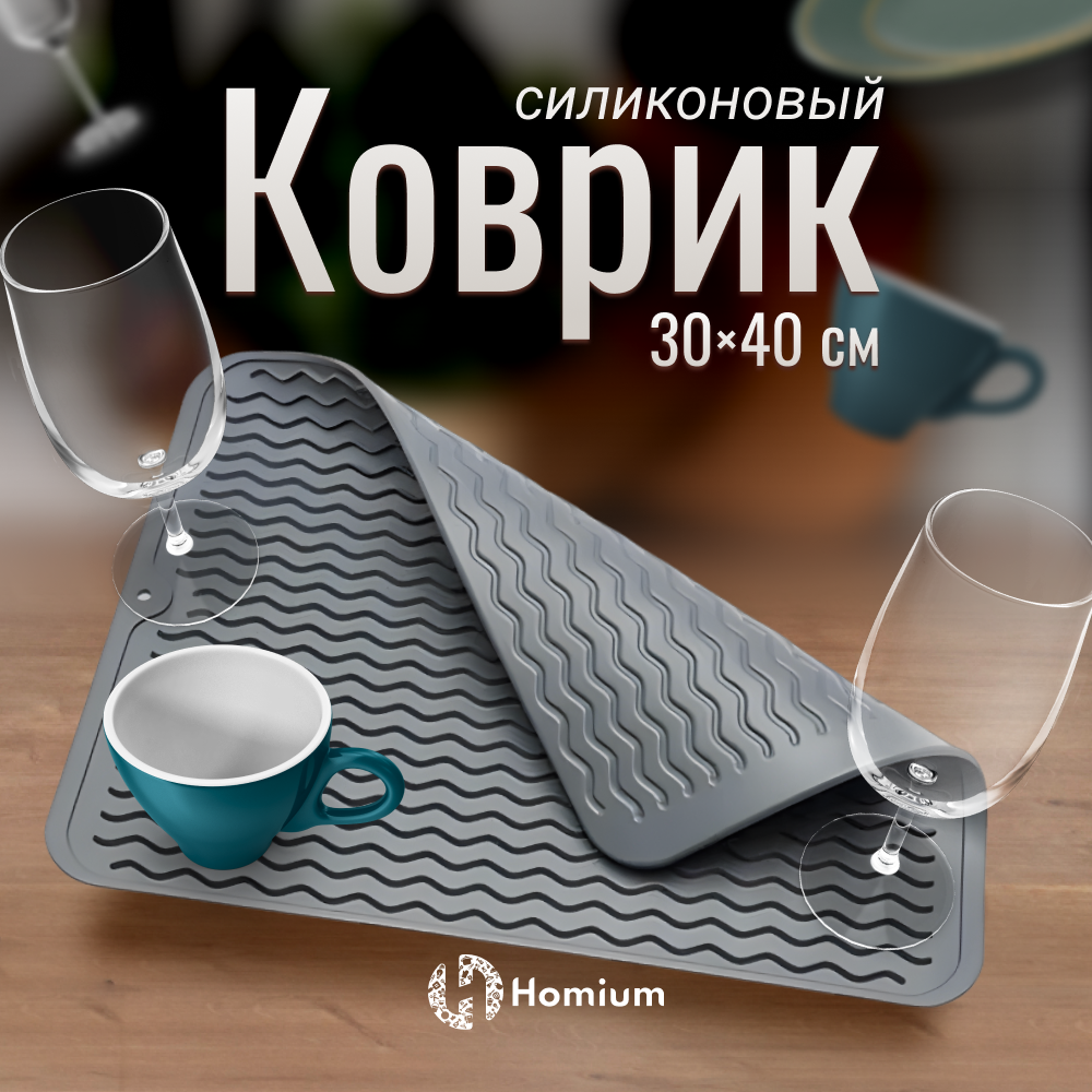 Силиконовый коврик для сушки посуды ZDK Homium, сушилка для посуды на кухню Волна (серый)