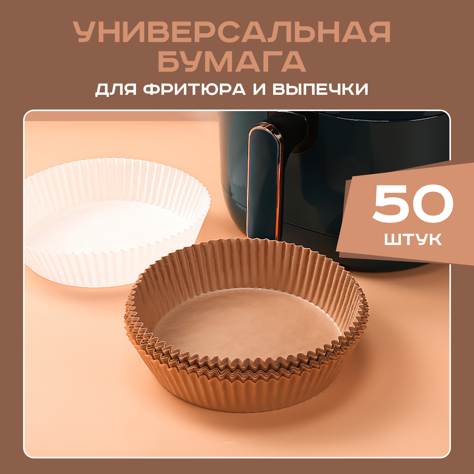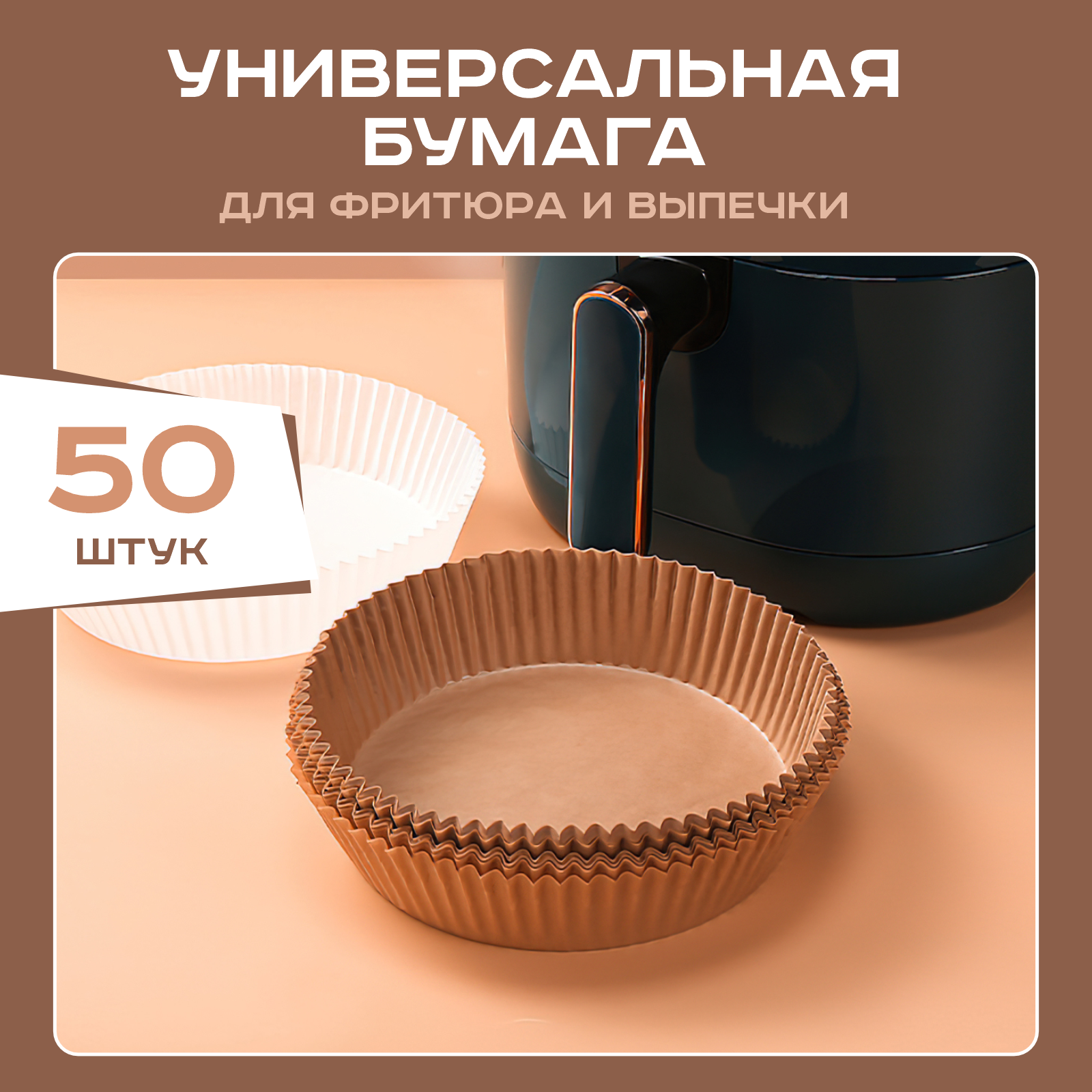 Одноразовые бумажные антипригарные вкладыши для фритюрницы утолщенные формы для выпечки и запекания 50 шт (Коричневый) интересное: