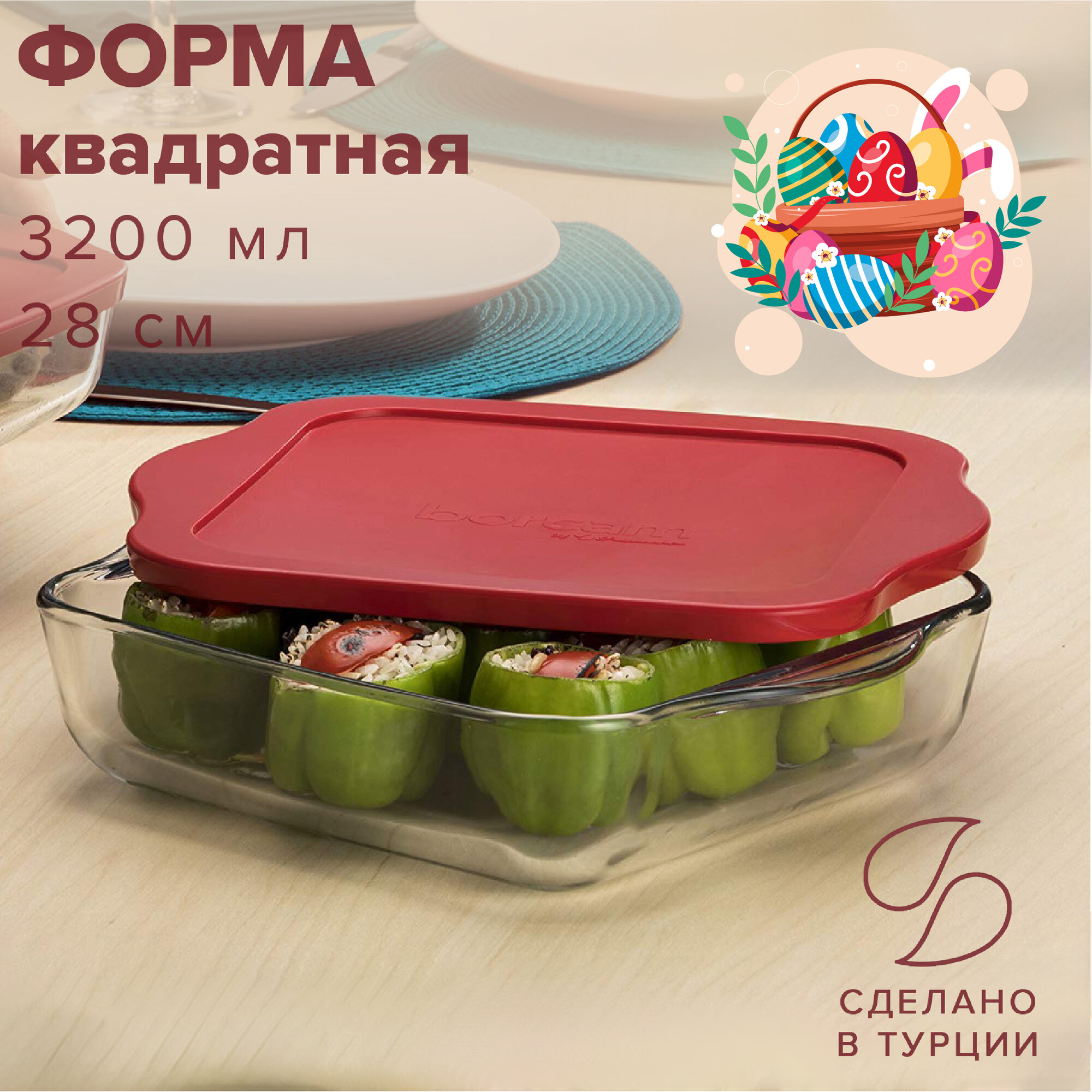 Купить Стеклянная квадратная форма для запекания с крышкой, 3,2 л. BORCAM