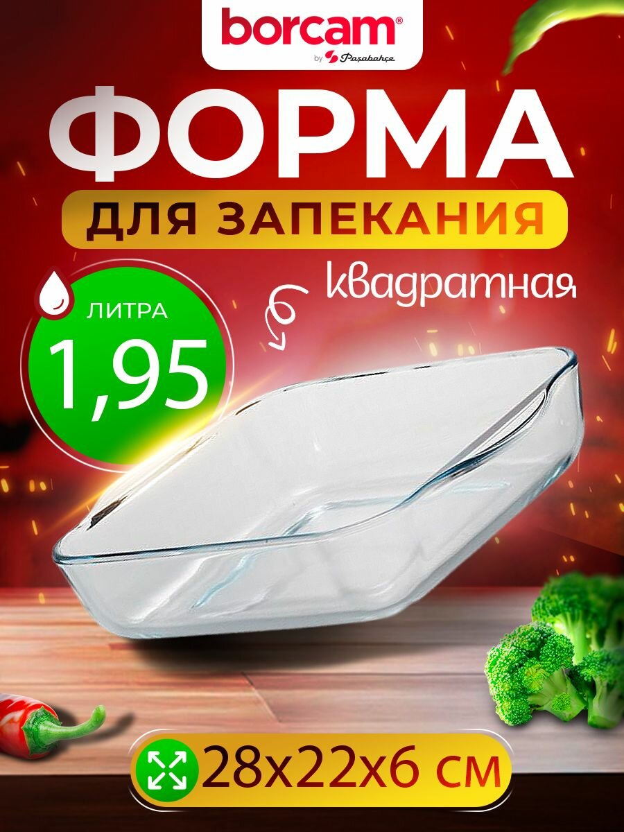 Стеклянная квадратная форма для запекания без крышки, 3,2 л. BORCAM