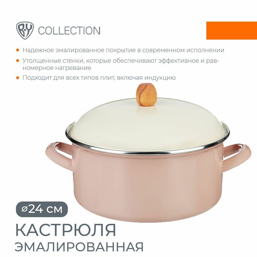 BY COLLECTION Кастрюля эмалированная, 24см, 4,7л, индукция, бежевый