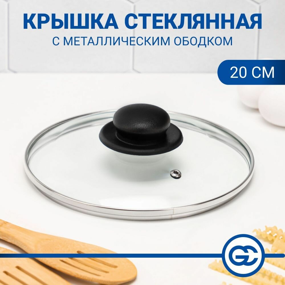Купить Крышка для сковороды и кастрюли 20 см с паровыпуском, металлический ободок