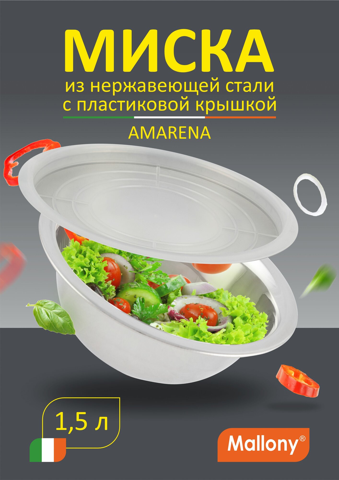 Миска из нержавеющей стали с пластиковой крышкой, объем 1,5 литра смешанная полировка корпуса интересное: