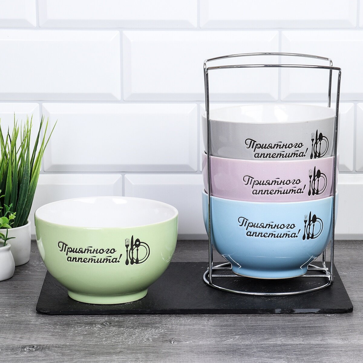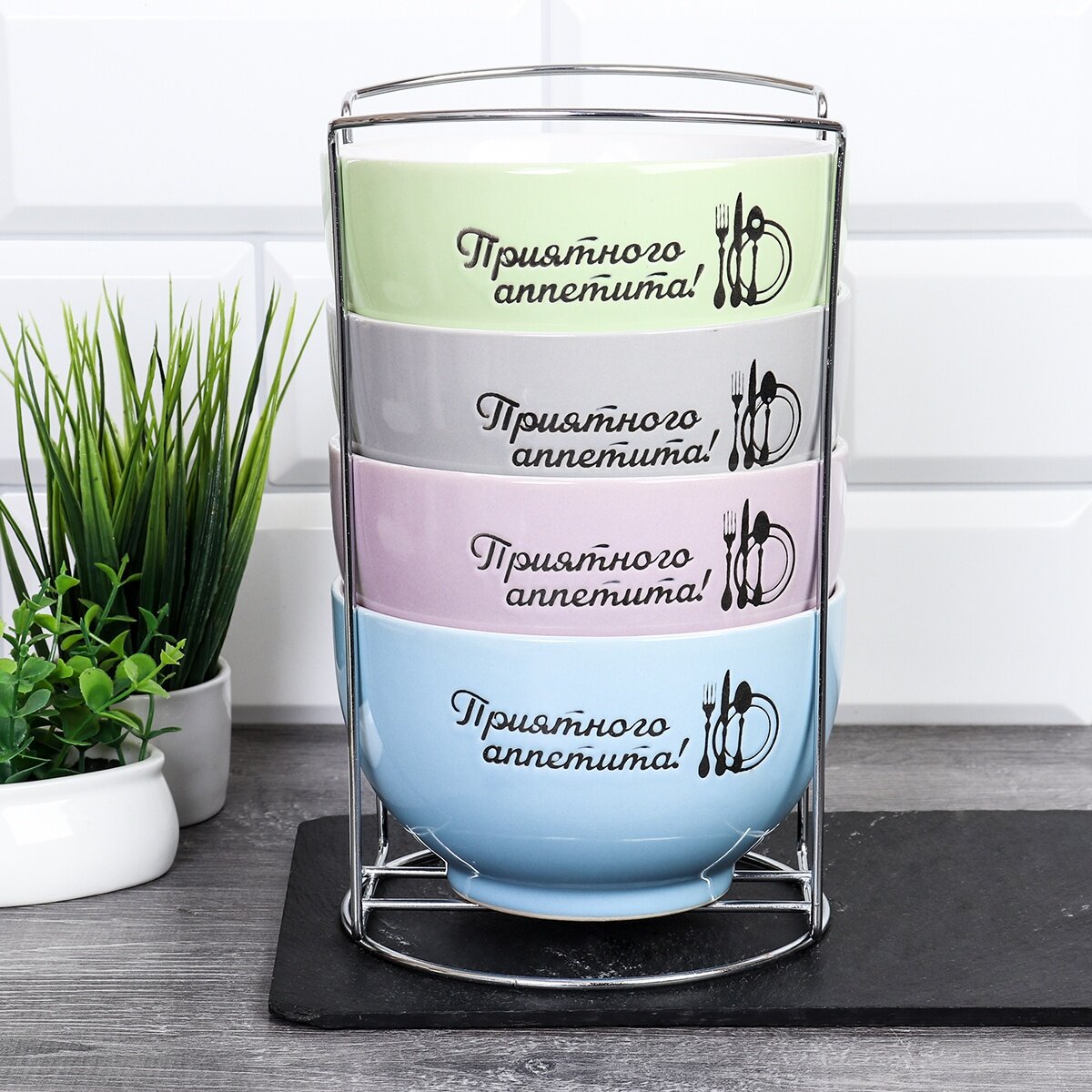 Супница 700 мл 4 штуки на подставке / WS-105 /уп 6/ интересное: