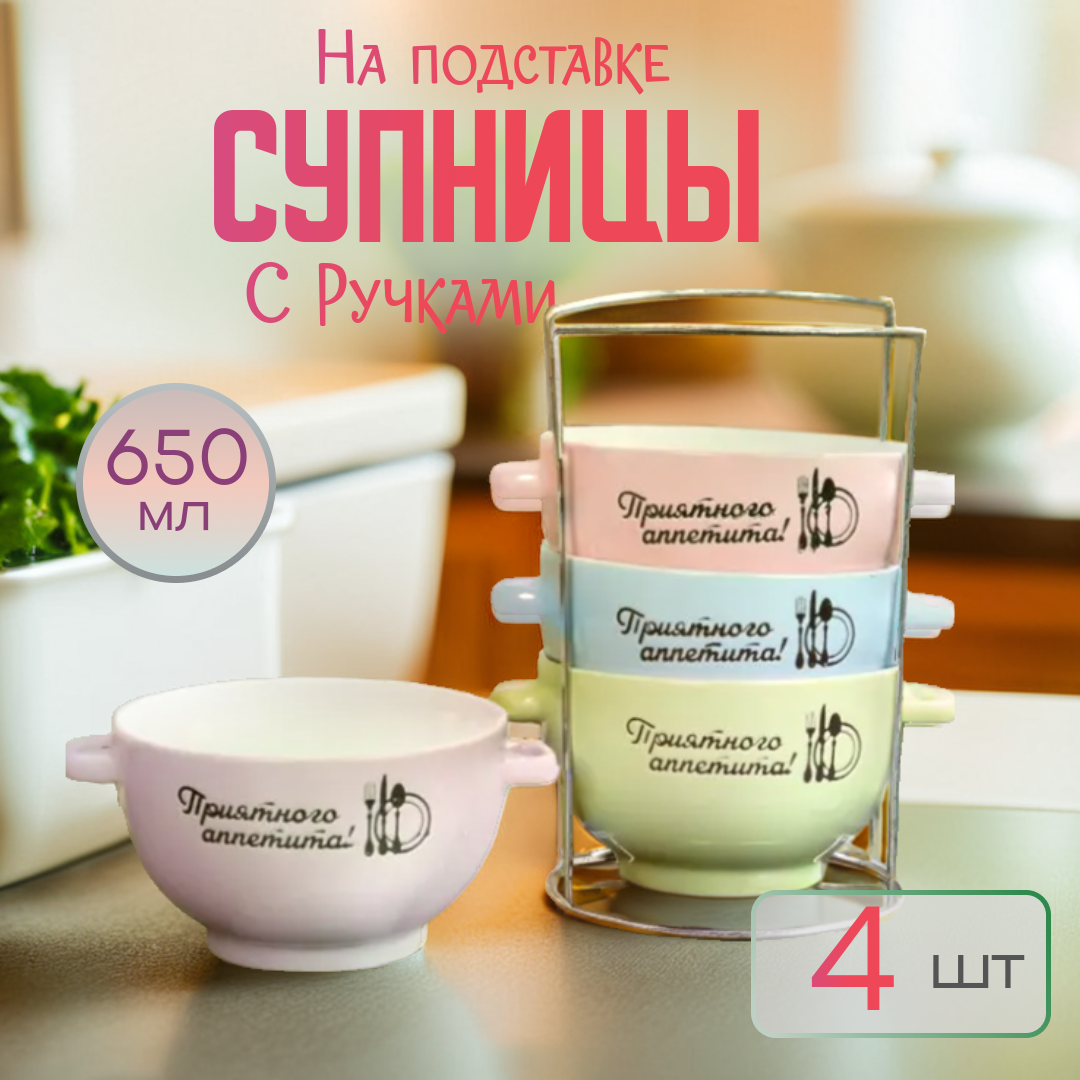 Набор супниц 650 мл 4 штуки на подставке глубокие