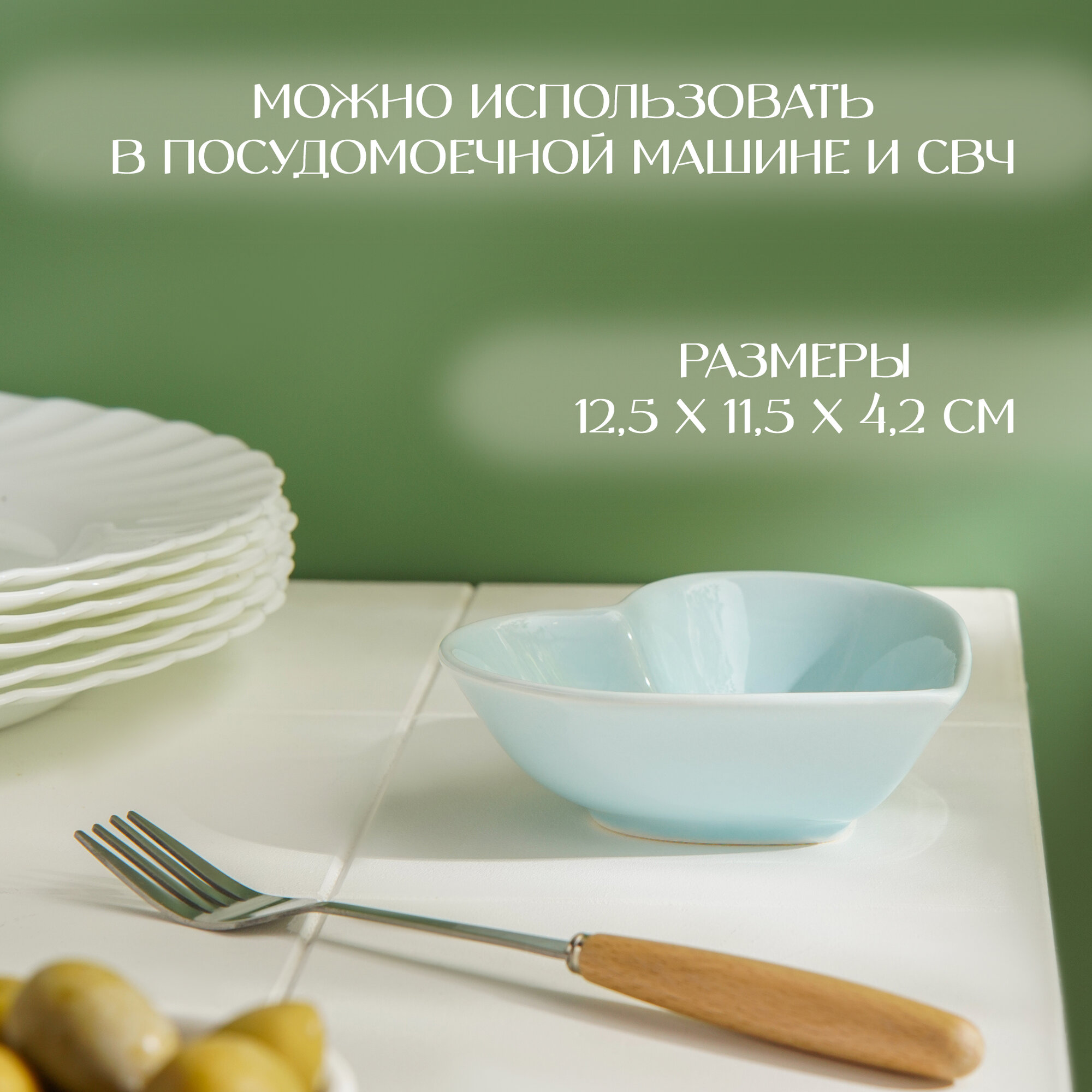 Салатник керамический порционный Доляна "Сердце" 12,5х11,5х4,2 см, цвет голубой