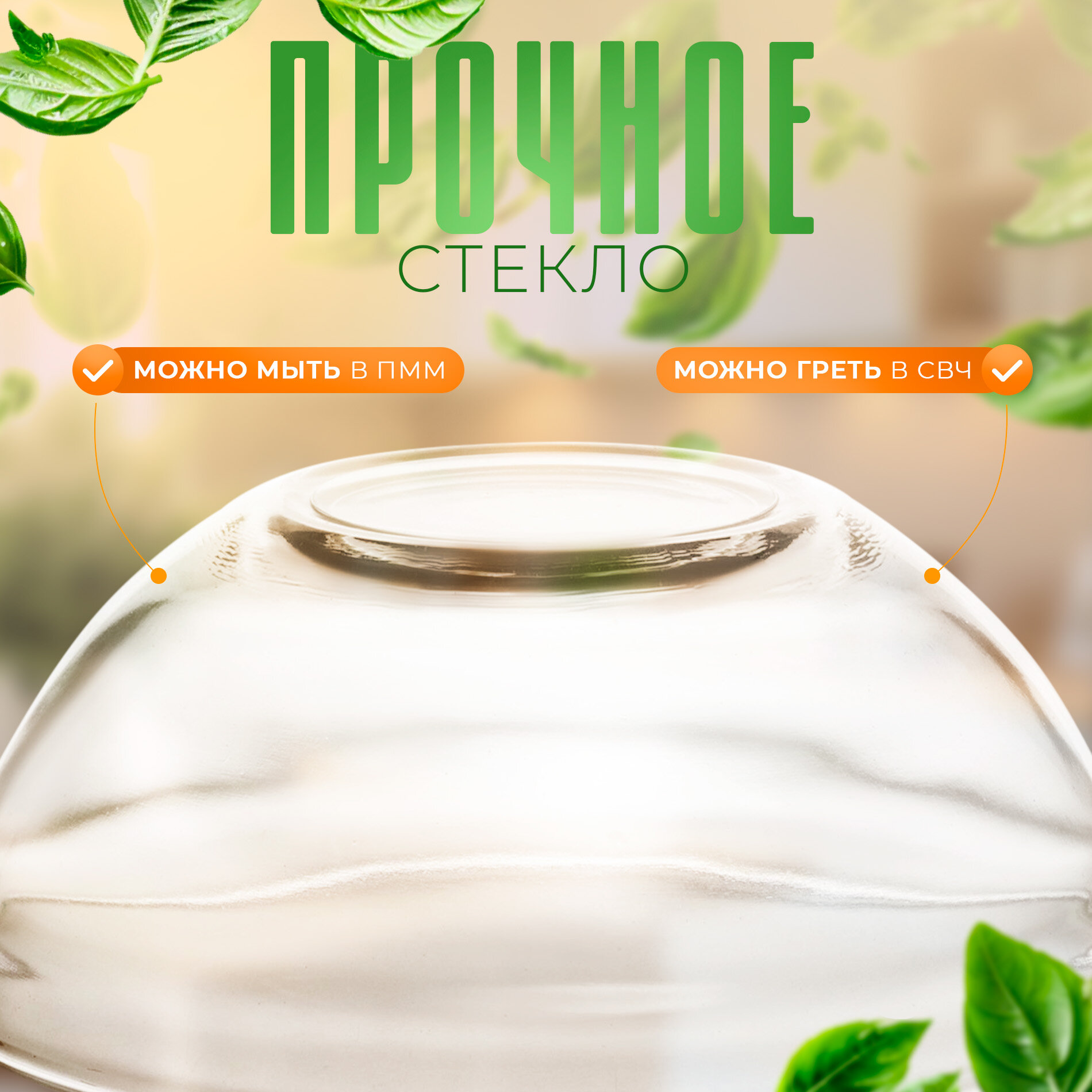 Салатник стеклянный Доляна "Романтичный киви", 920 мл, 22*5 см