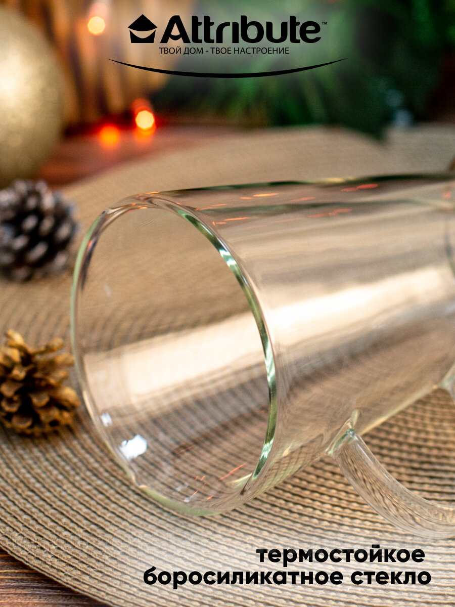 Термокружка LATTE 400мл, ATTRIBUTE TEA, стеклянная, прозрачная