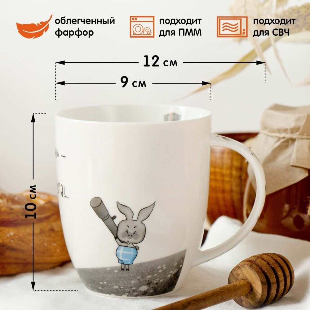Кружка большая белая фарфор 420 мл. в подарочной упаковке. Бременские музыканты принт "Ну-ка, все вместе"