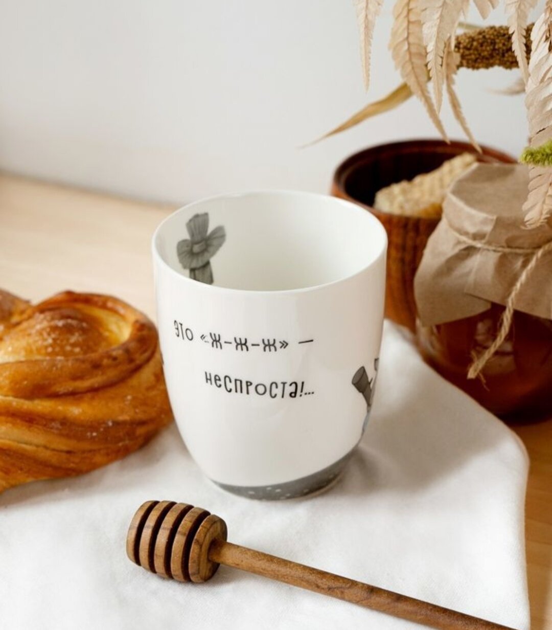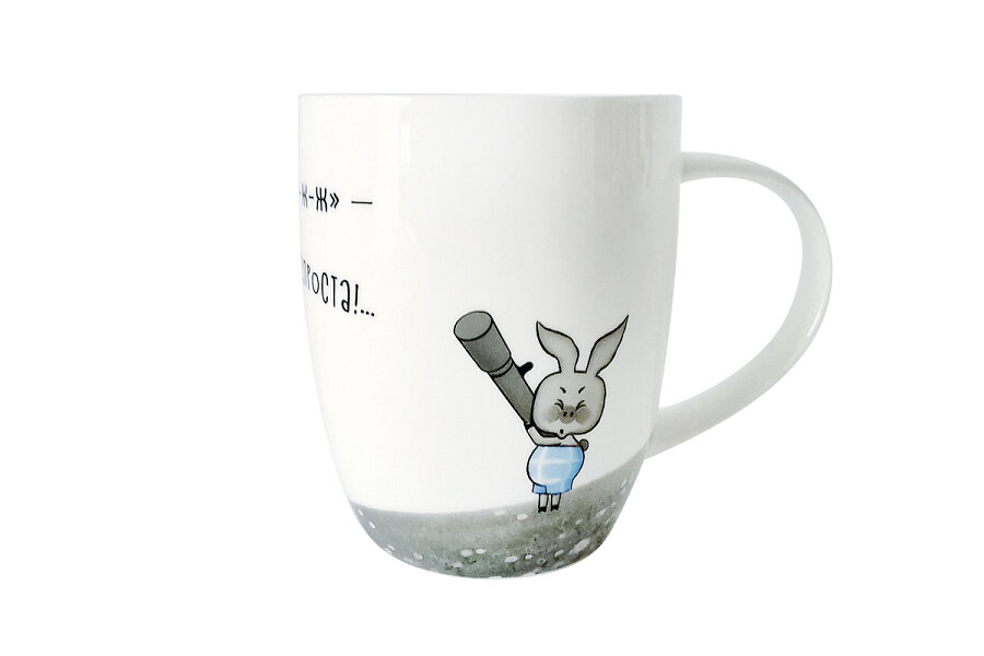 Кружка большая белая фарфор 420 мл. в подарочной упаковке. Бременские музыканты принт "Петь птицы перестали."