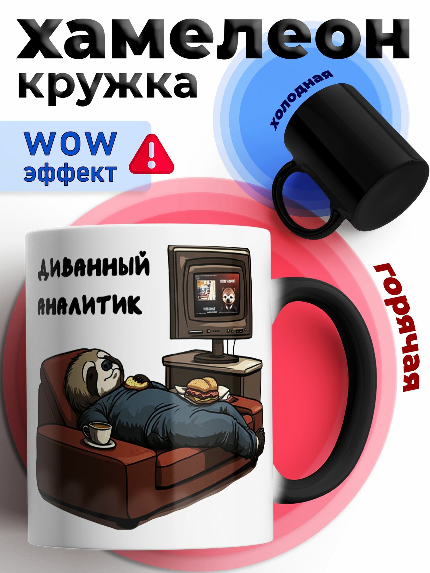 СохранитьКружка хамелеон с принтом и надписью "Диванный аналитик" интересное:
