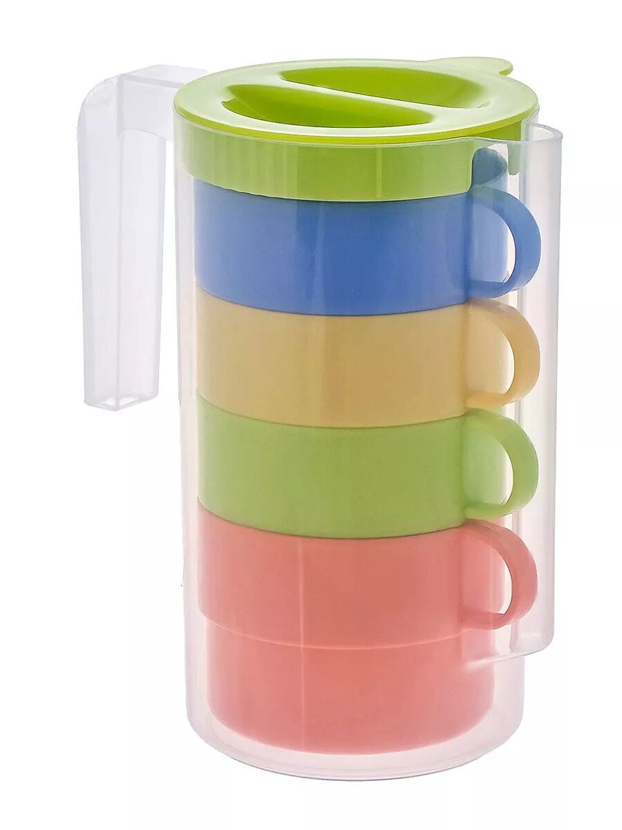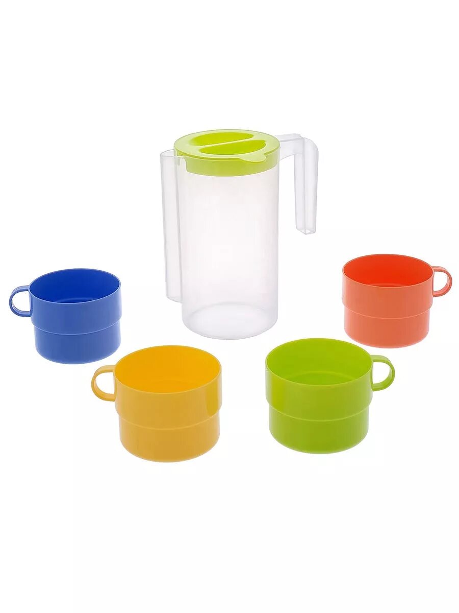 Кувшин для воды Альтернатива Турист, 1 л + 4 кружки 0,3 л, микс