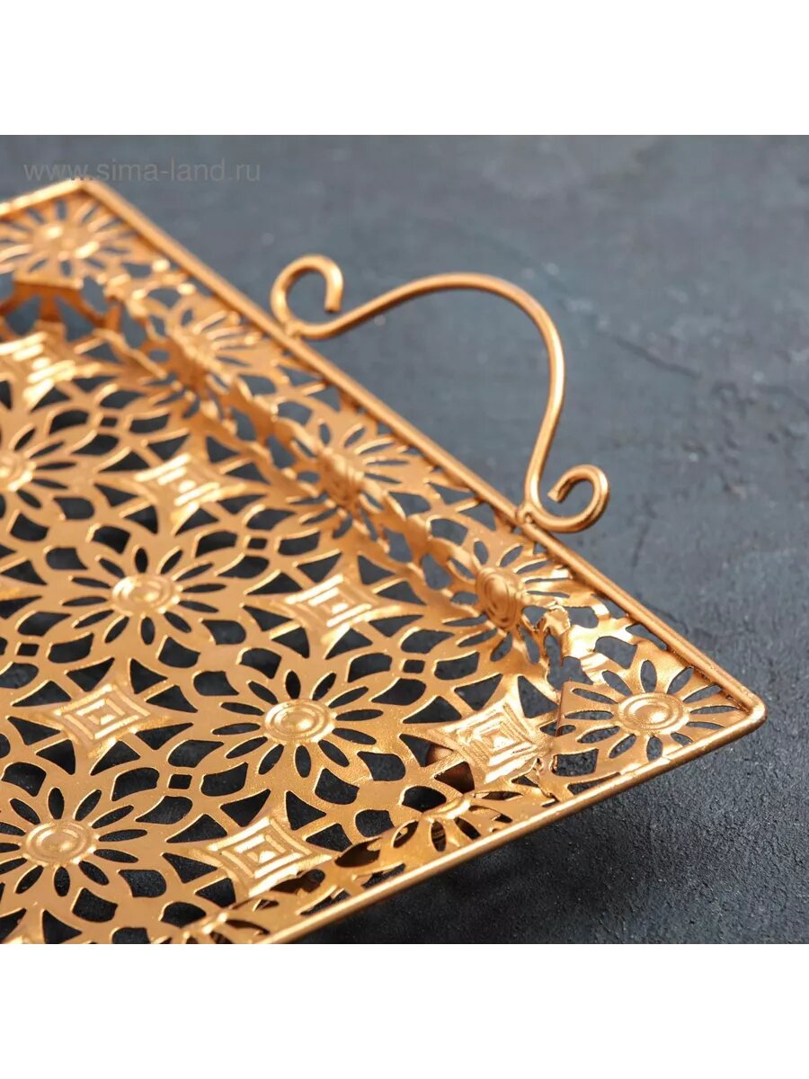 Поднос сервировочный "Золотые цветы", 50x29x6 см, металл, цвет золотой
