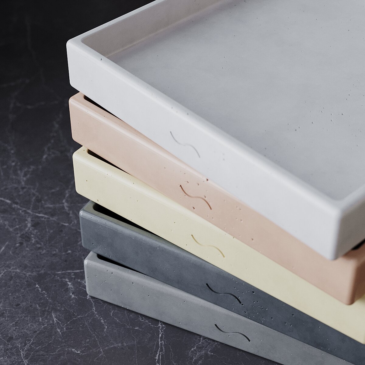 Поднос кухонный Emily S 23x10 см, декоративная подставка, бетон, серый глянцевый