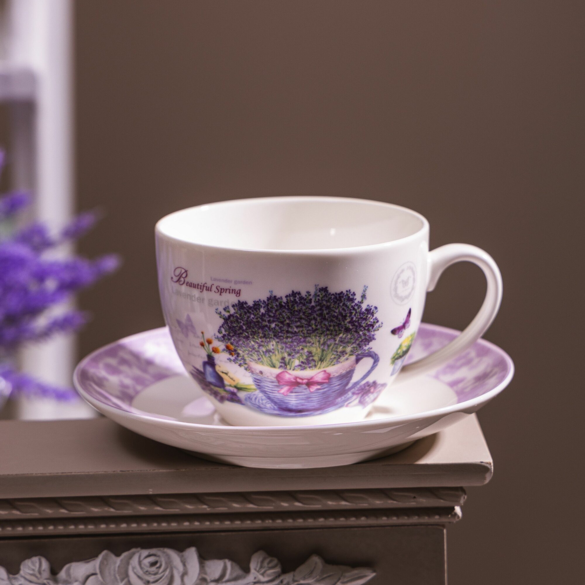 Купить Чайный набор из фарфора на 6 персон, 12 предметов: чашка 280 мл 6 шт., блюдце 6 шт. Lefard "Лавандовая Весна"