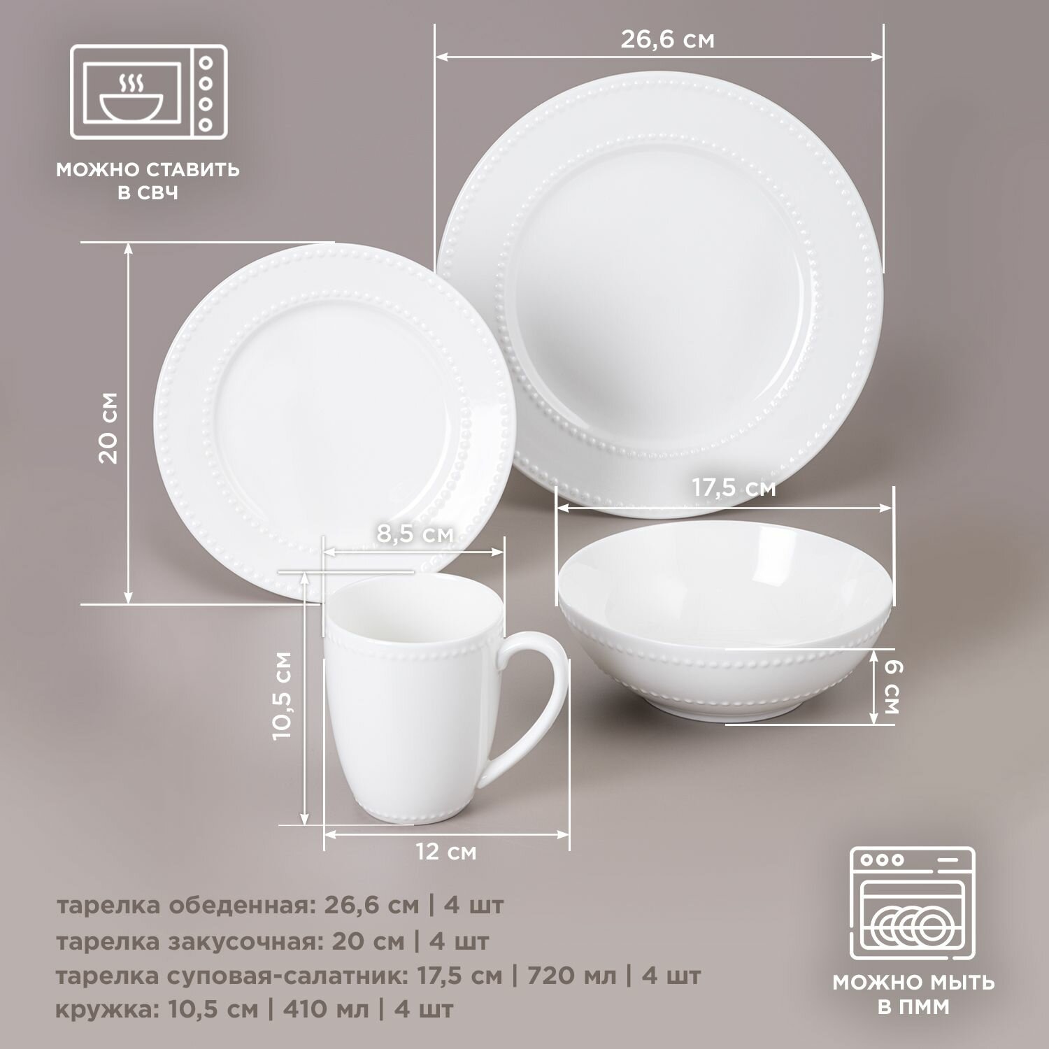 Купить Набор обеденной посуды Lefard "Pearl" на 4 персоны 16 предметов