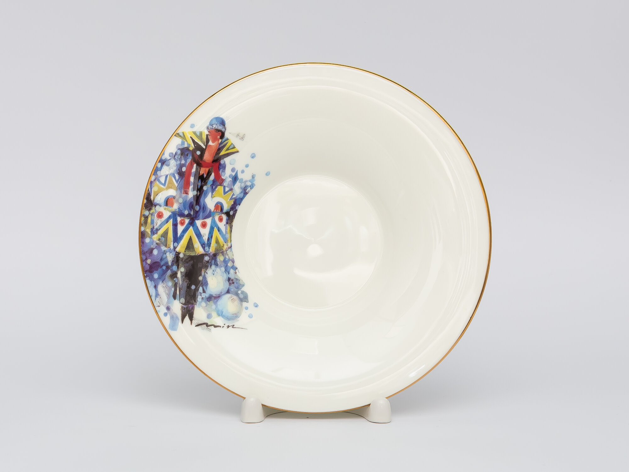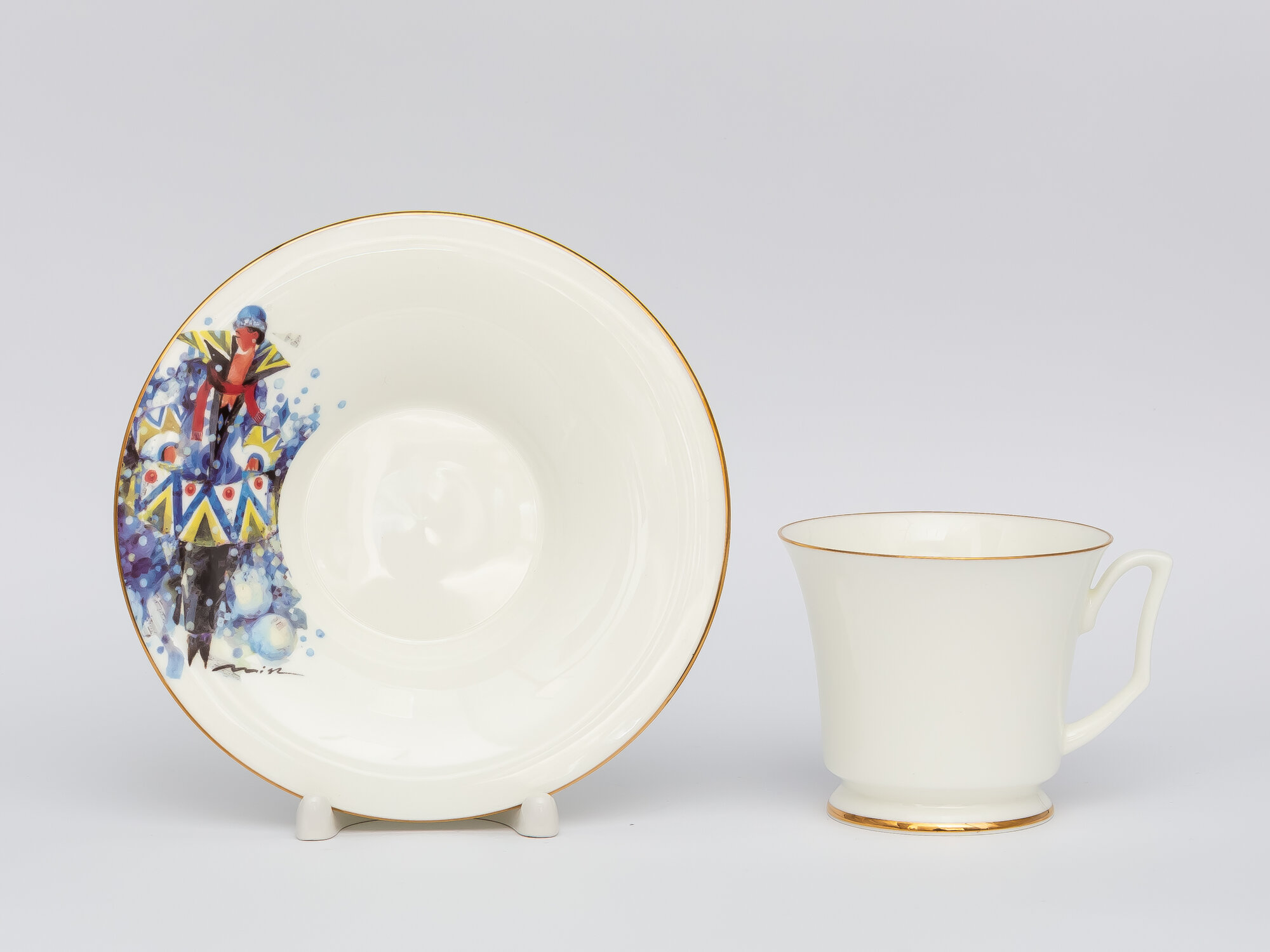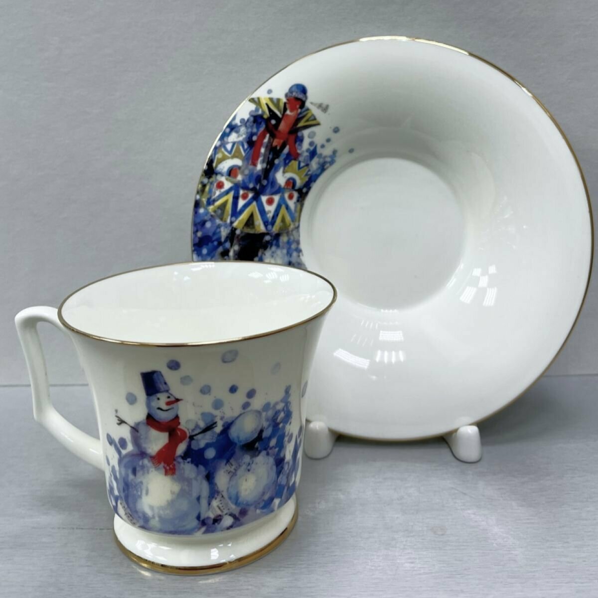 Чашка с блюдцем чайная 210 мл, форма "Юлия", рисунок "Рождественское чаепитие", костяной фарфор. Императорский фарфоровый завод ИФЗ