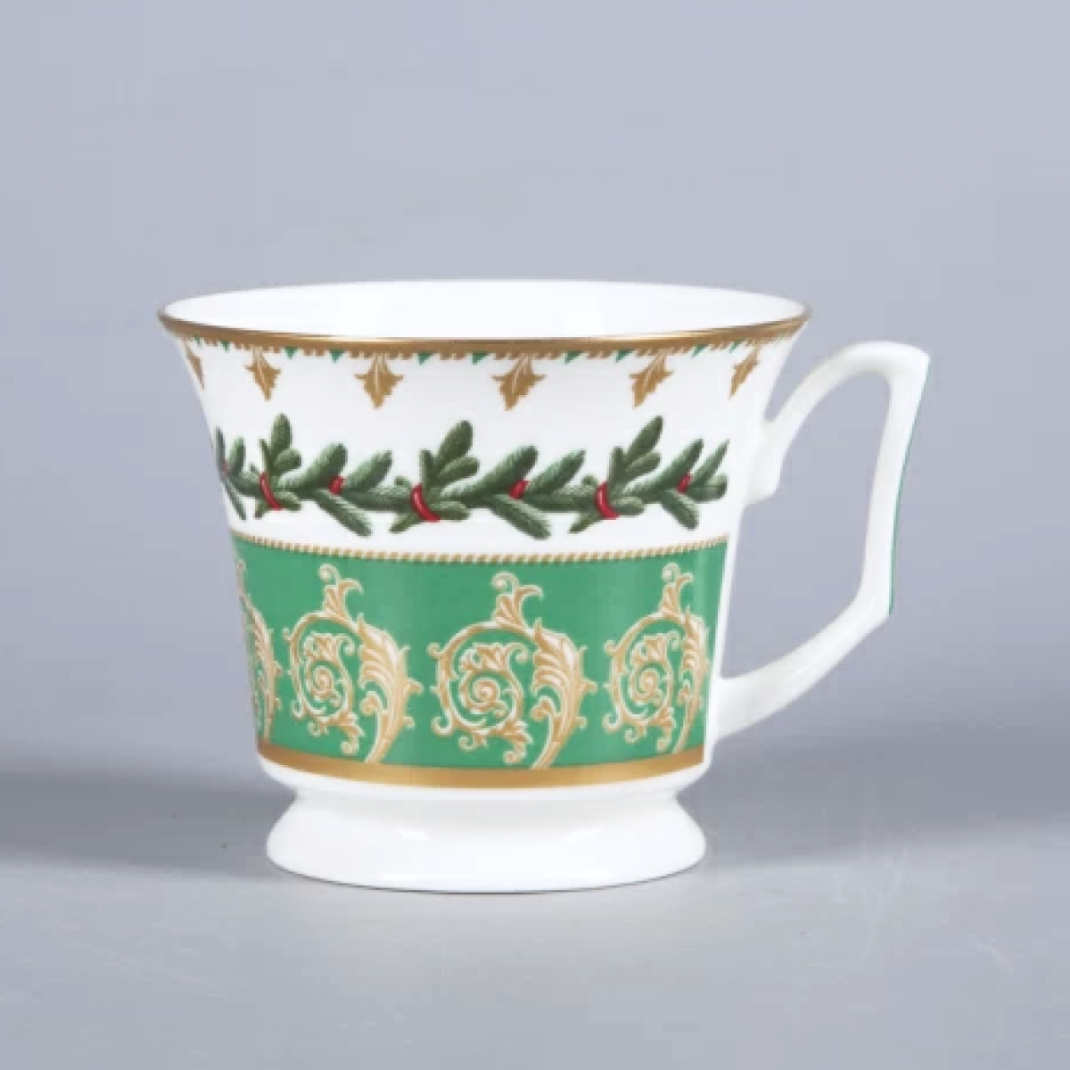 Купить Чашка с блюдцем чайная 210 мл, форма "Юлия", рисунок "Еловые веточки" костяной фарфор. Императорский фарфоровый завод ИФЗ
