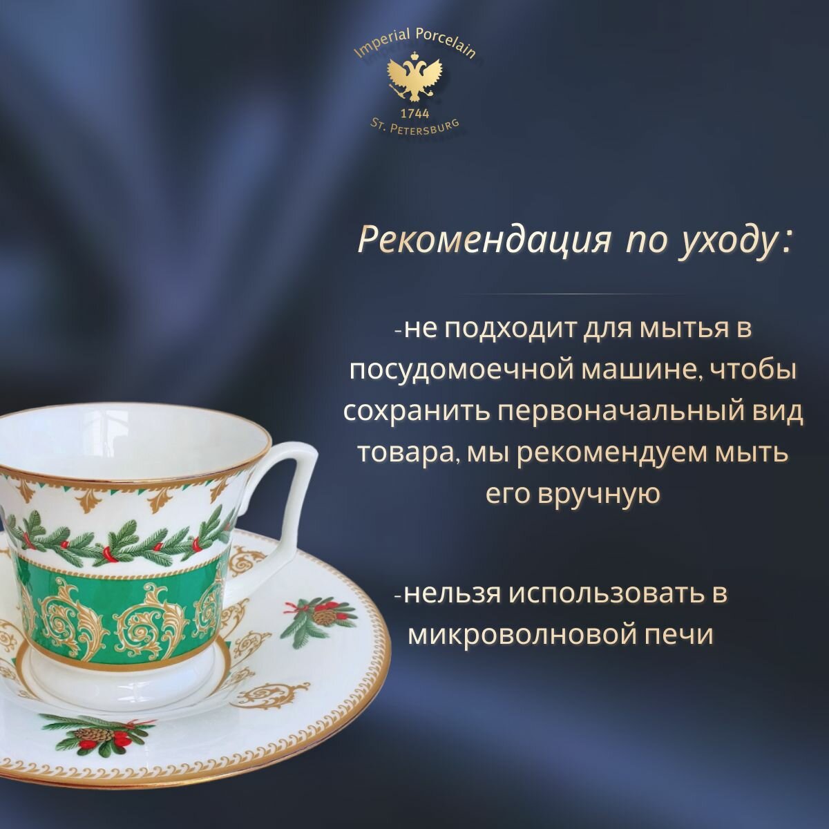 СохранитьЧашка с блюдцем чайная 210 мл, форма "Юлия", рисунок "Еловые веточки" костяной фарфор. Императорский фарфоровый завод ИФЗ интересное: