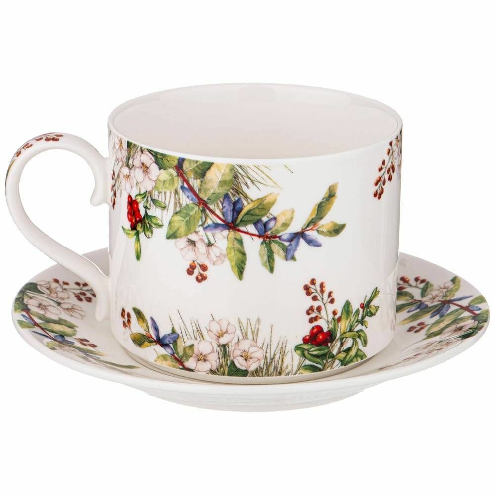 Чайная пара фарфоровая Lefard "Лесная сказка. Снегири" 250 мл