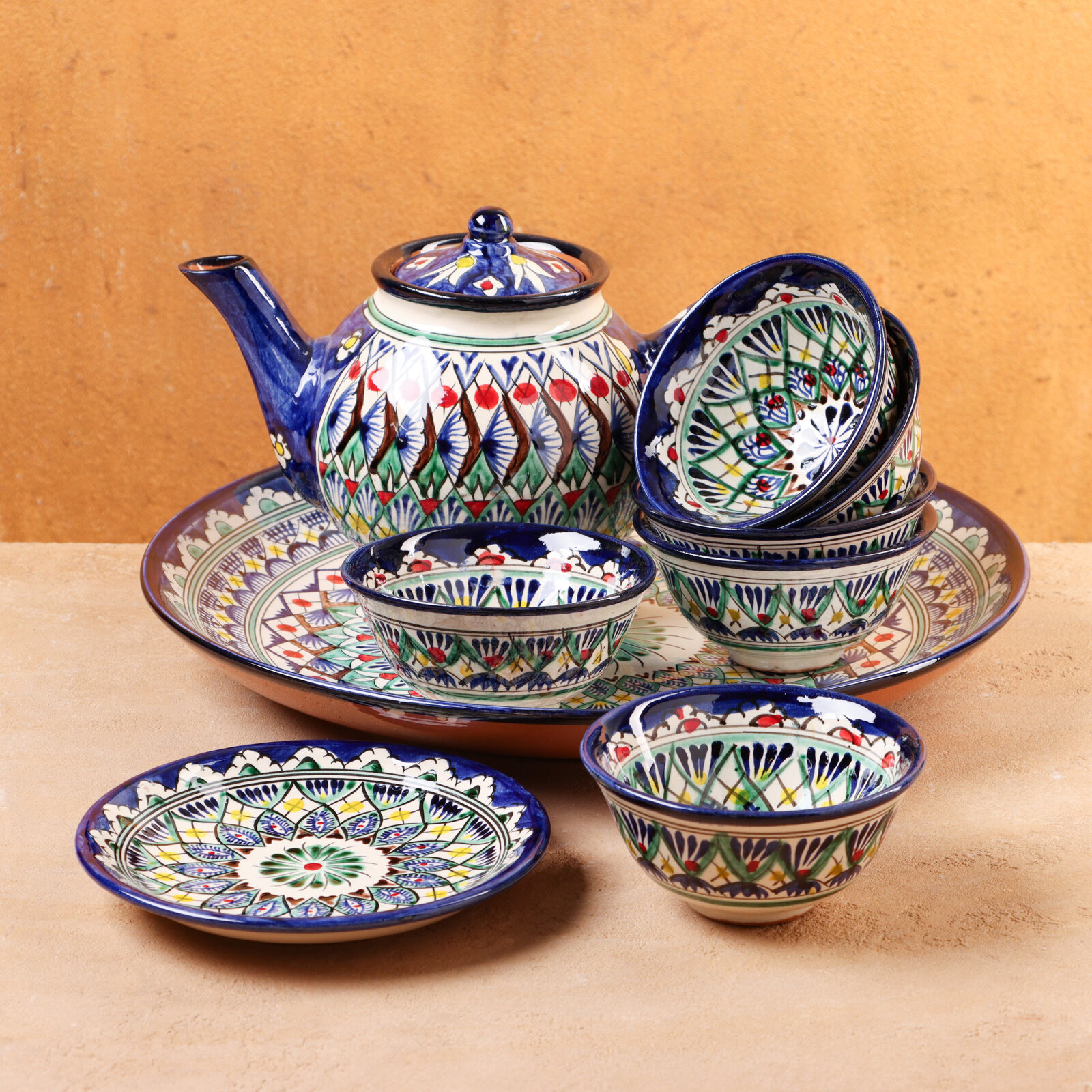 | Комплектация | чайник 0.8 л - 1 шт., блюдце под чайник - 1 шт., пиалы 0.2 л. - 6 шт., ляган 31 см - 1 шт. |