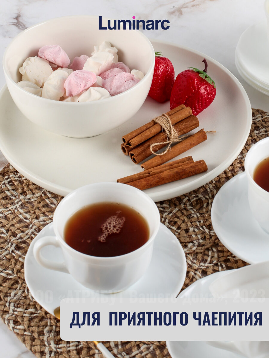 Набор чайный Luminarc "Trianon", 12 элементов, ударопрочное стекло, белый